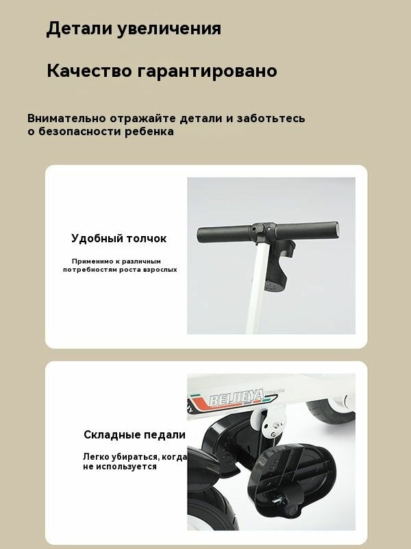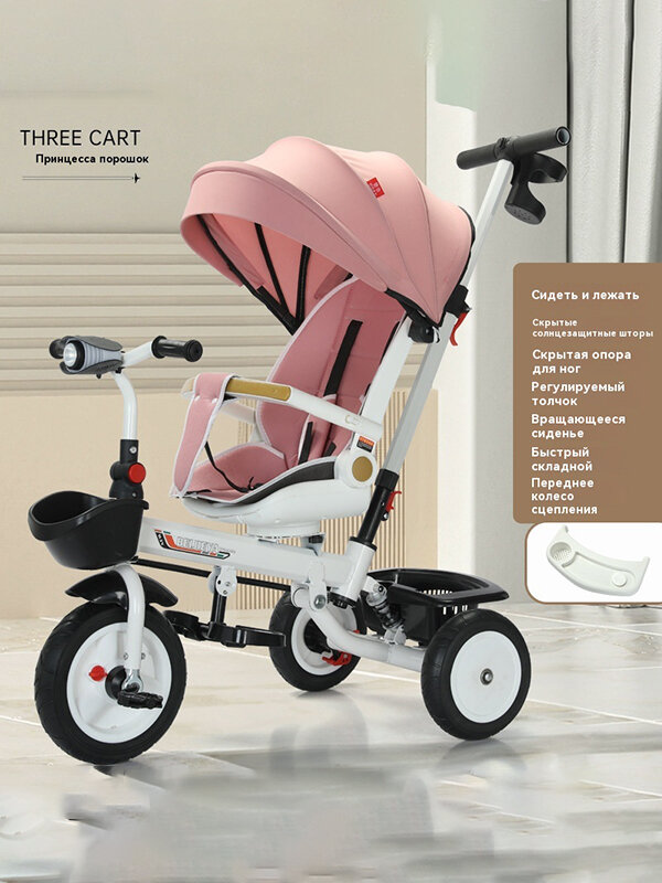 Велосипед-Коляска, для детей, складной, трехколесный, с ручкой, светло-розовый интересное: