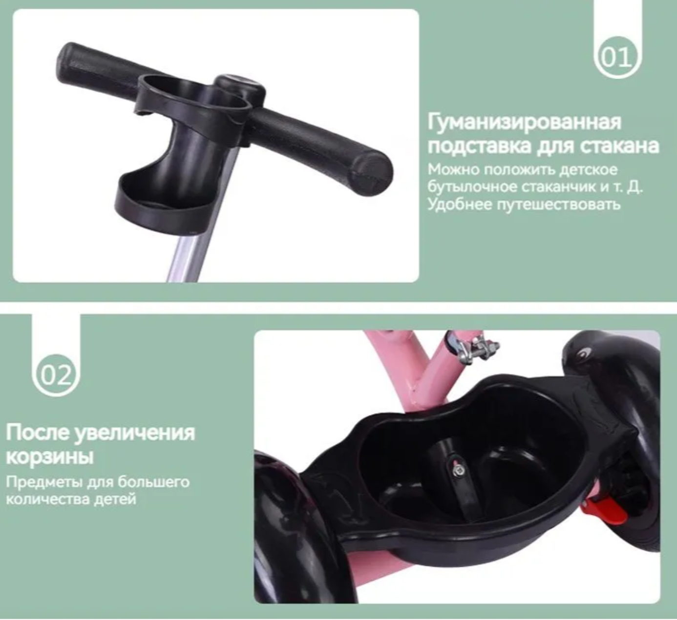 Велосипед-тележка Qizhilong, трехколесный, для детей 1-5 лет, пудра, металл