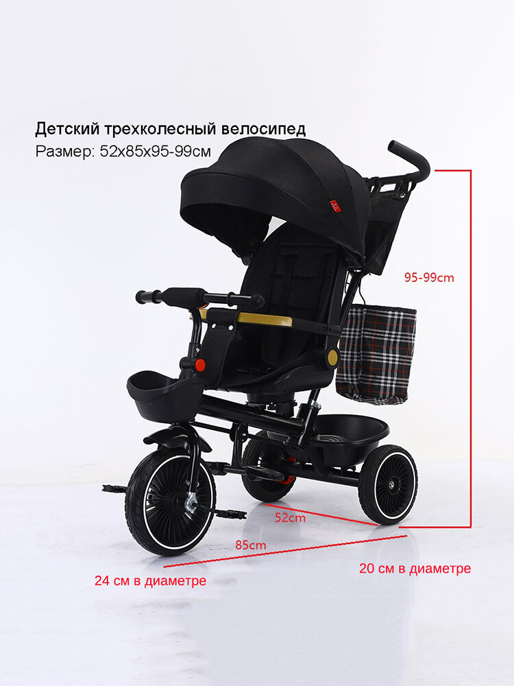 Велосипед KJ0022, детский, трехколёсный, складной, вращение сиденья, чёрный интересное: