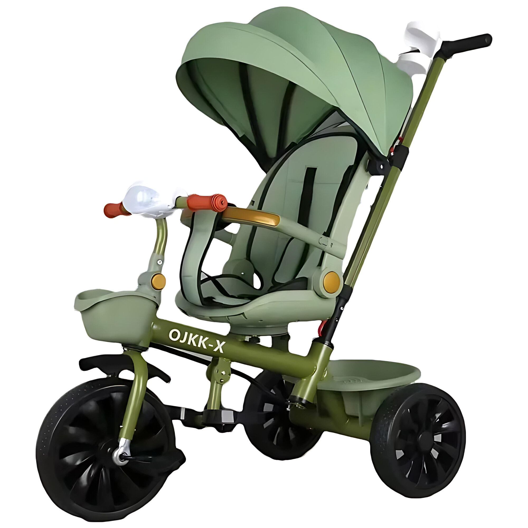 Купить Трехколесный велосипед/прогулочная коляска с ручкой, Зеленый цвет авокадо
