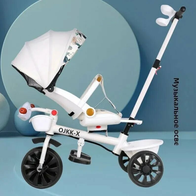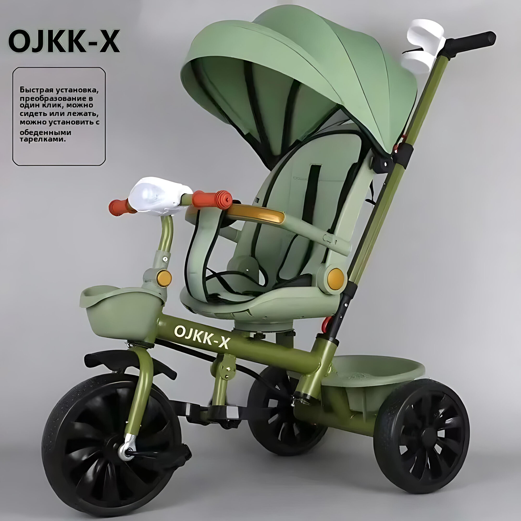 Трехколесный велосипед/прогулочная коляска с ручкой, Зеленый цвет авокадо интересное: