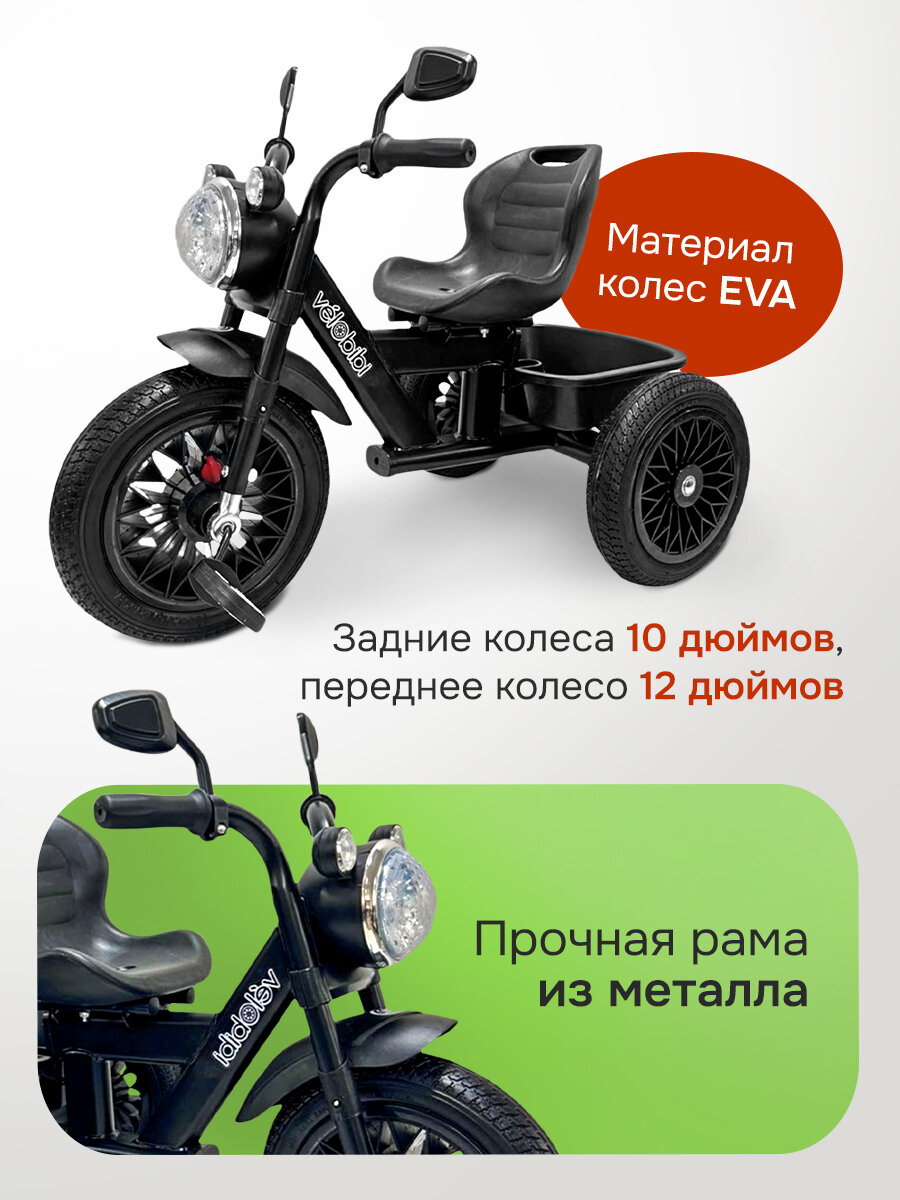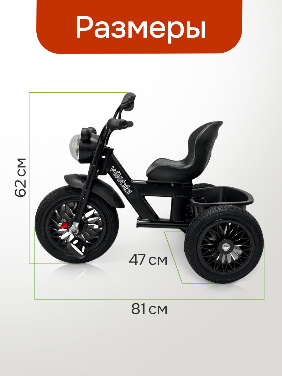 Детский музыкальный трёхколёсный велосипед "Орбита" (резиновые колеса, со светом, музыкой) черный интересное:
