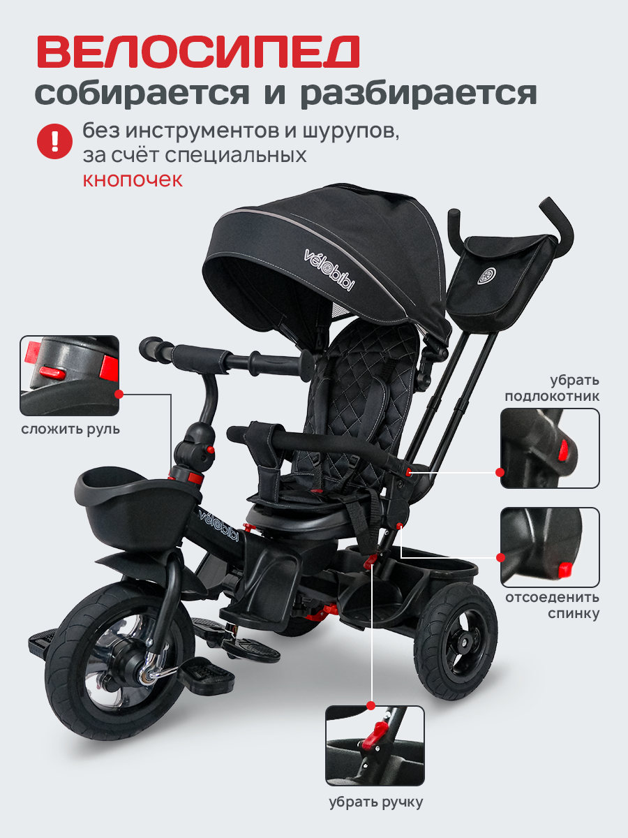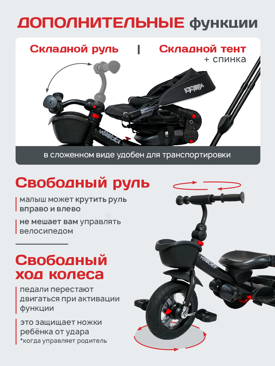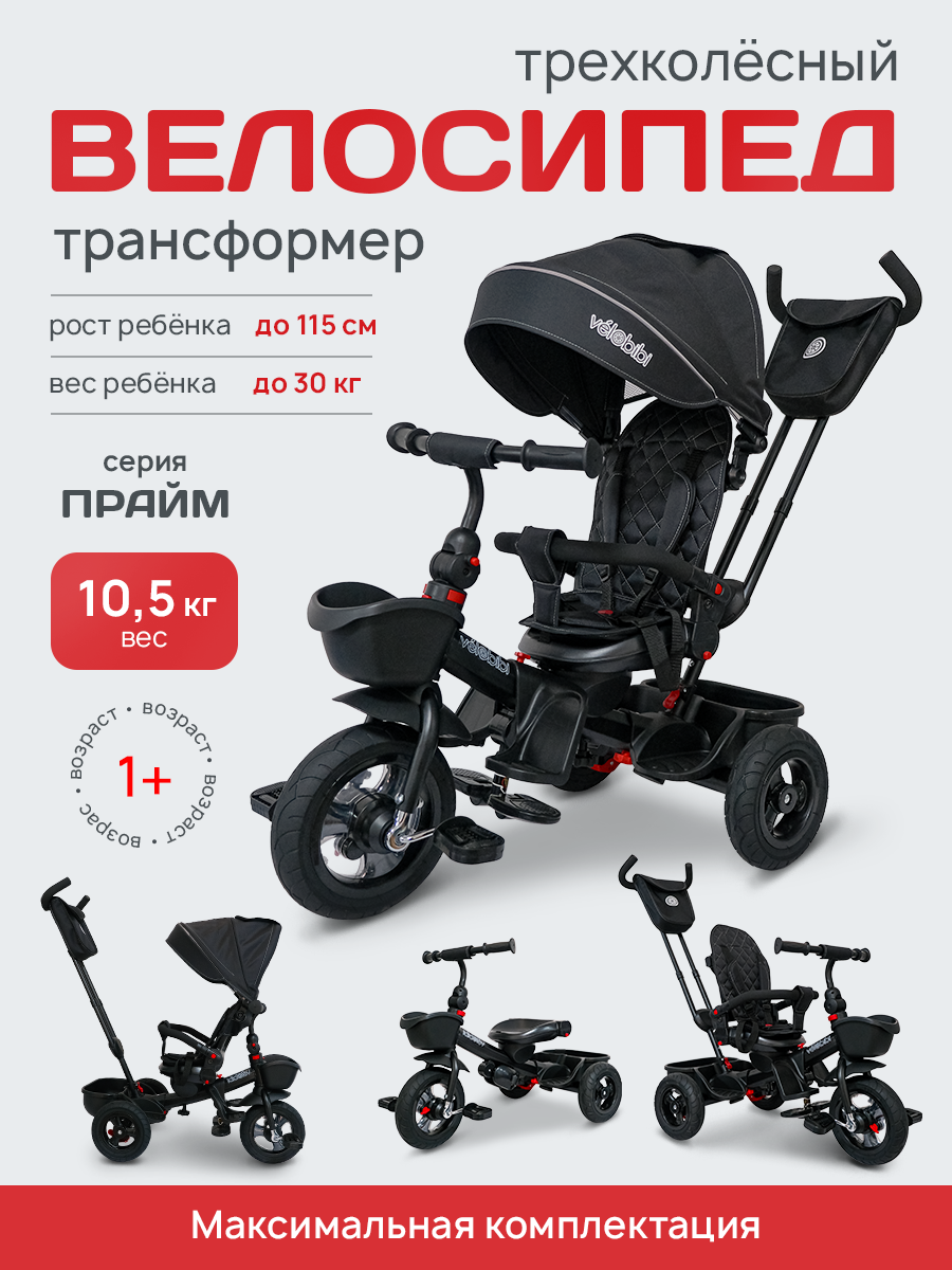 Велосипед-трансформер "Прайм" трёхколесный с ручкой, нагрузка до 30 кг, для детей от 1+, черный интересное: