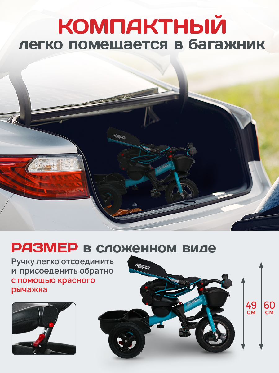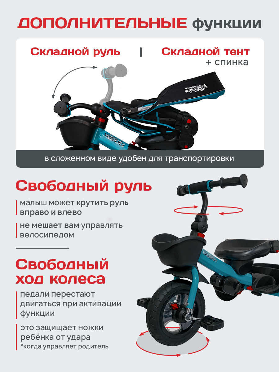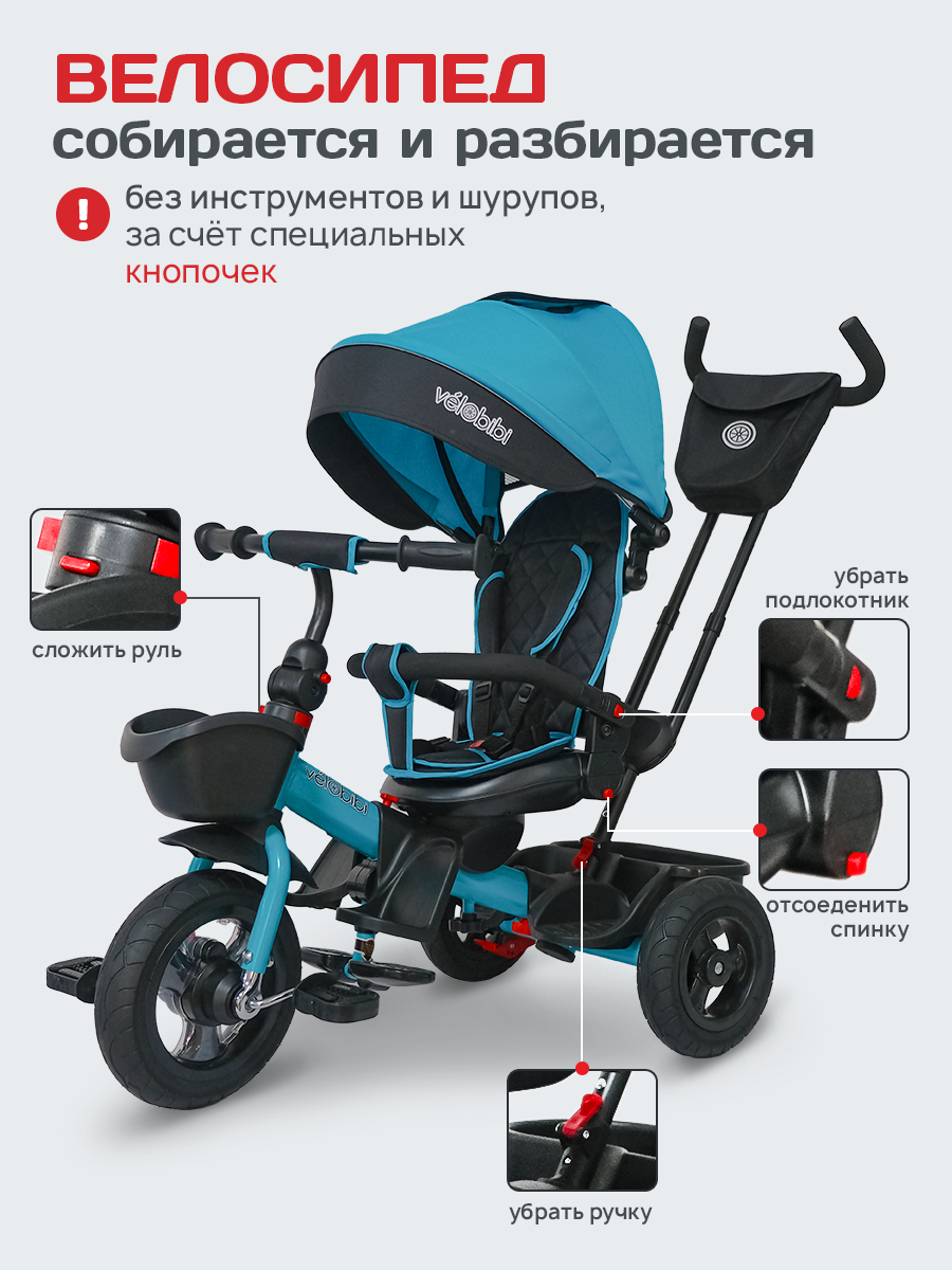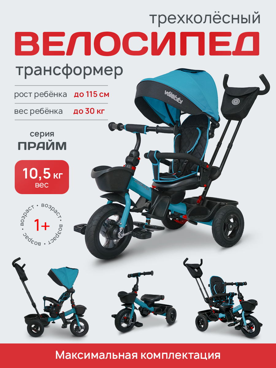 Велосипед-трансформер "Прайм" трёхколесный с ручкой, нагрузка до 30 кг, для детей от 1+, бирюза интересное: