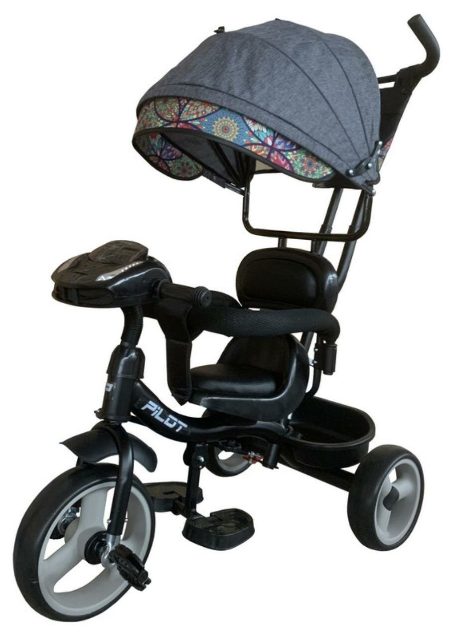 Купить Велосипед трехколесный Pilot с ручкой управления, графит, пластиковые колеса 10 и 8 дюймов