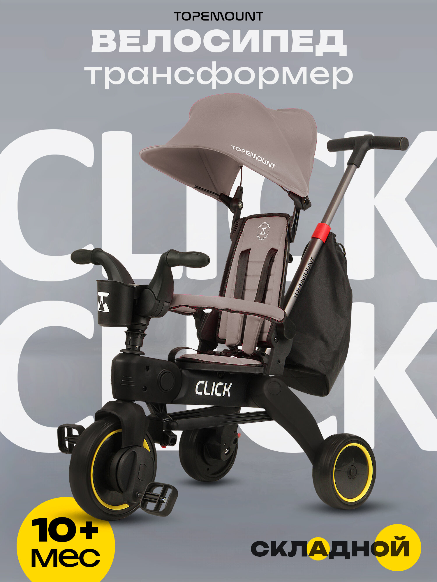 Велосипед трехколесный детский с ручкой складной "CLICK"; трансформер; серый интересное: