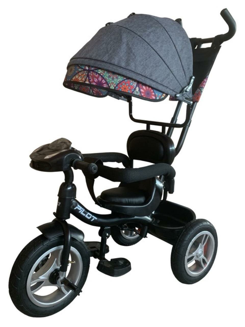 Купить Велосипед 3-х колесный Pilot с ручкой управления, надувные колеса 12 и 10 дюймов, цвет графит
