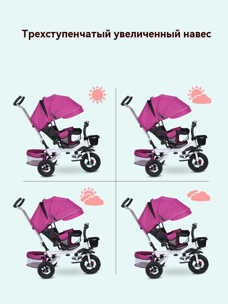 Детский велосипед, с ручкой, с козырьком, трехколесный, складной, , до 45 кг