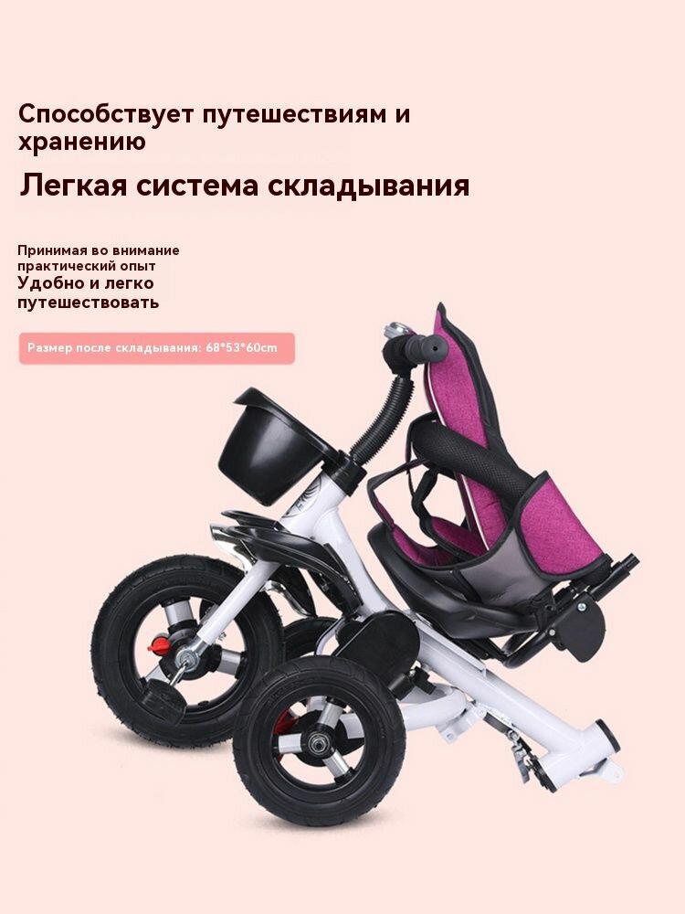 Детский велосипед, с ручкой, с козырьком, трехколесный, складной, , до 45 кг
