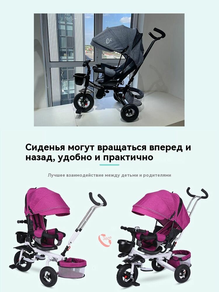 Велосипед трехколесный, 3в1, с ручкой, для малышей, от 1 до 6 лет
