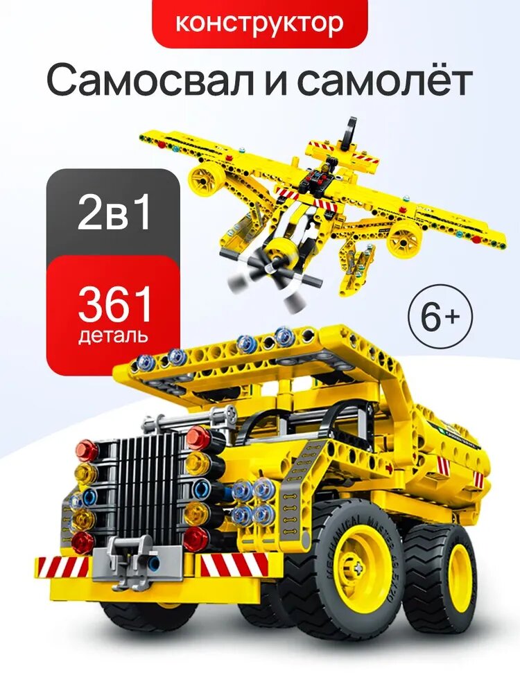 Конструктор пластиковый "Самосвал и самолёт" 2в1 361 деталь Артикул 6802IMM интересное: