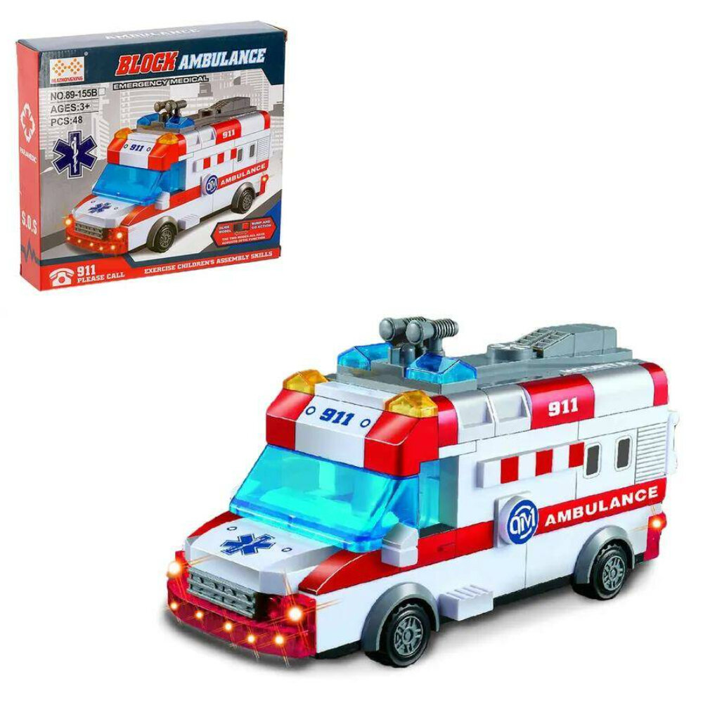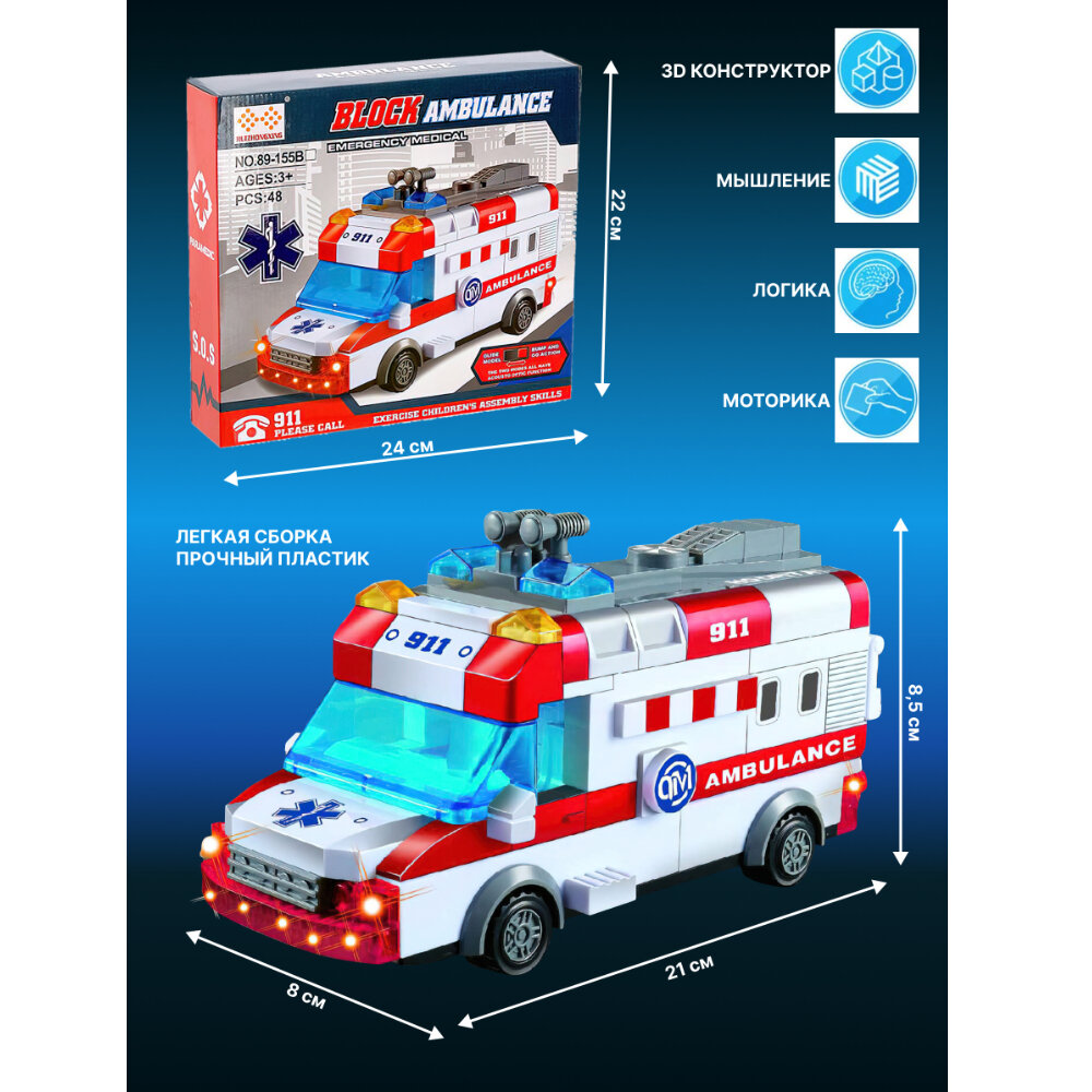Пластиковый конструктор машина скорой помощи для мальчиков, 48 деталей, свет, звук, 89-03С интересное: