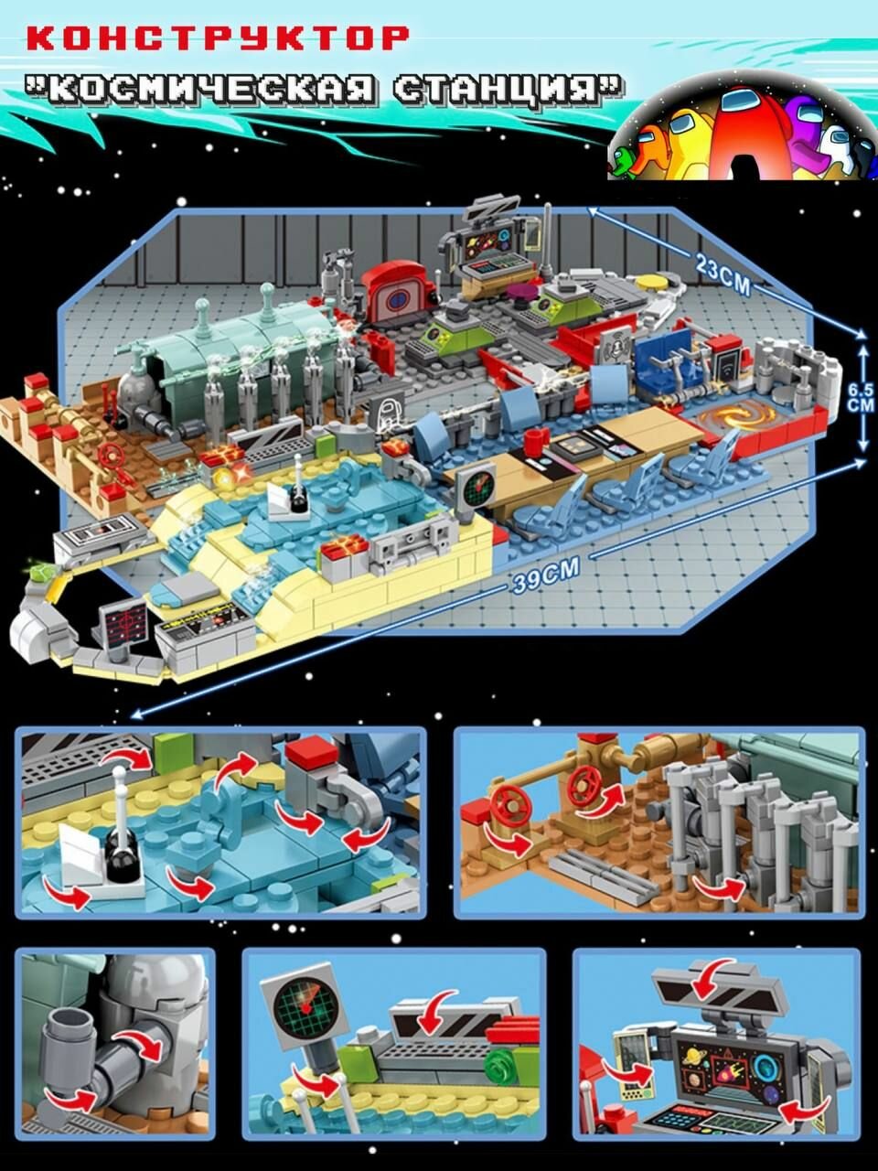 Купить Конструктор Амонг Ас (Among us) Большой Космическая станция 982 / Амонгус конструктор для мальчика и для девочки