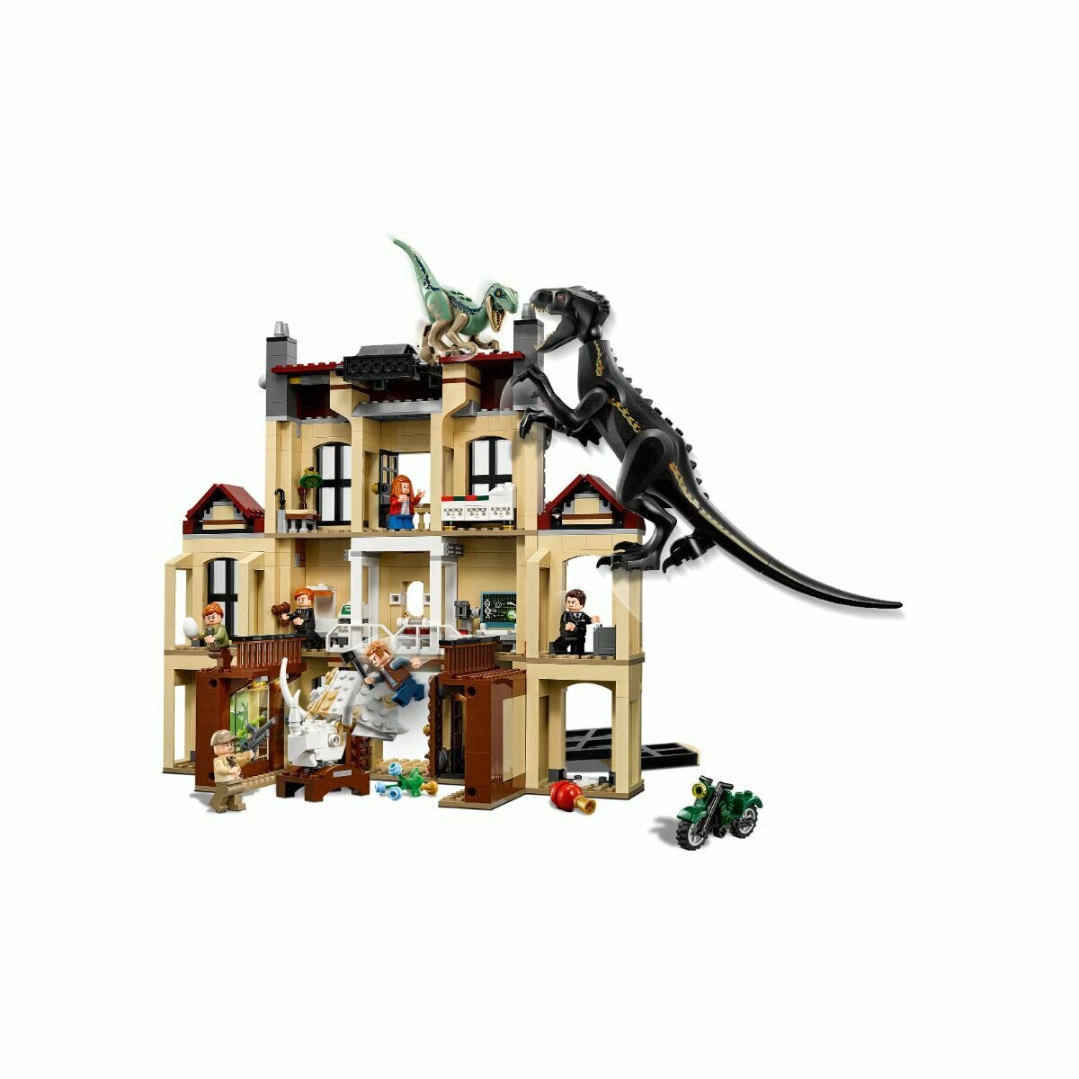 Купить Конструктор динозавры / Jurassic World / Нападение Индораптора в поместье Локвуд 1019 деталей