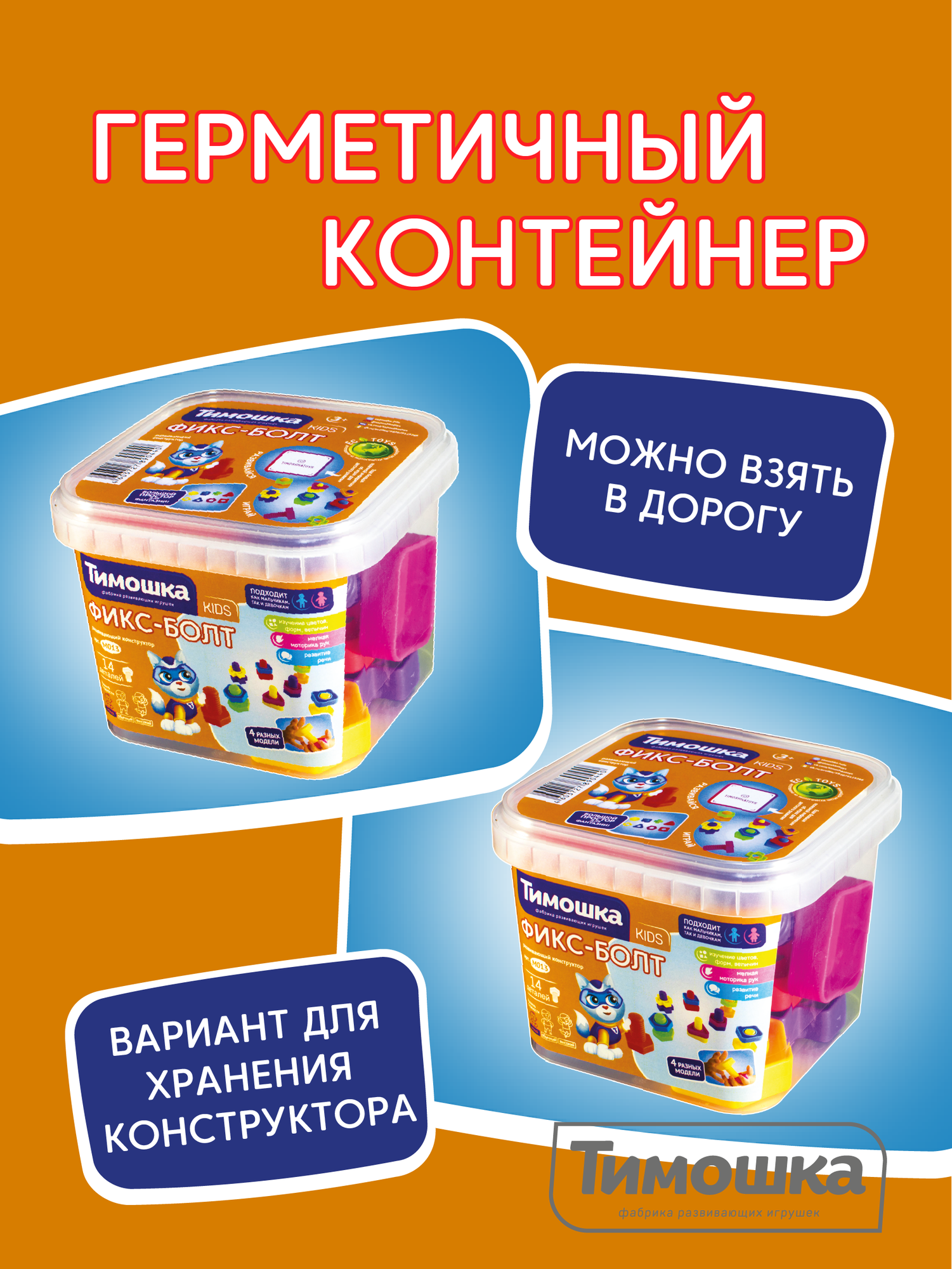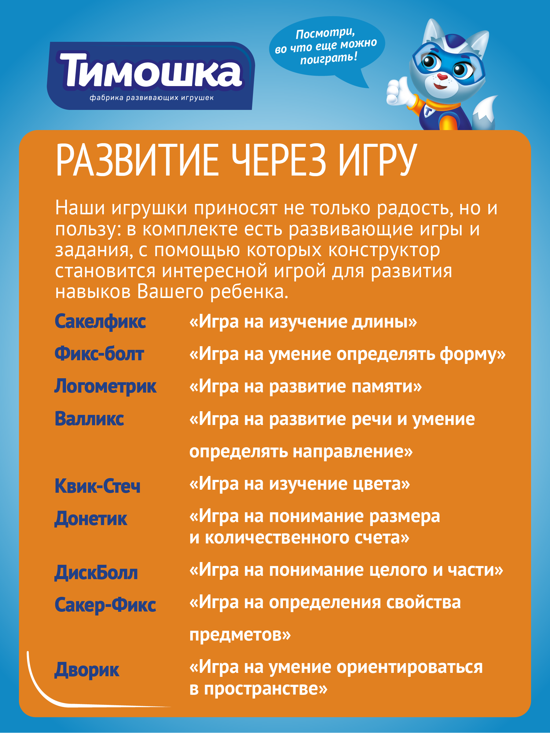 Конструктор Тимошка KIDS 14 деталей. Фикс-Болт (в контейнере) (от 3 лет) М013, (ТД Алтай) интересное: