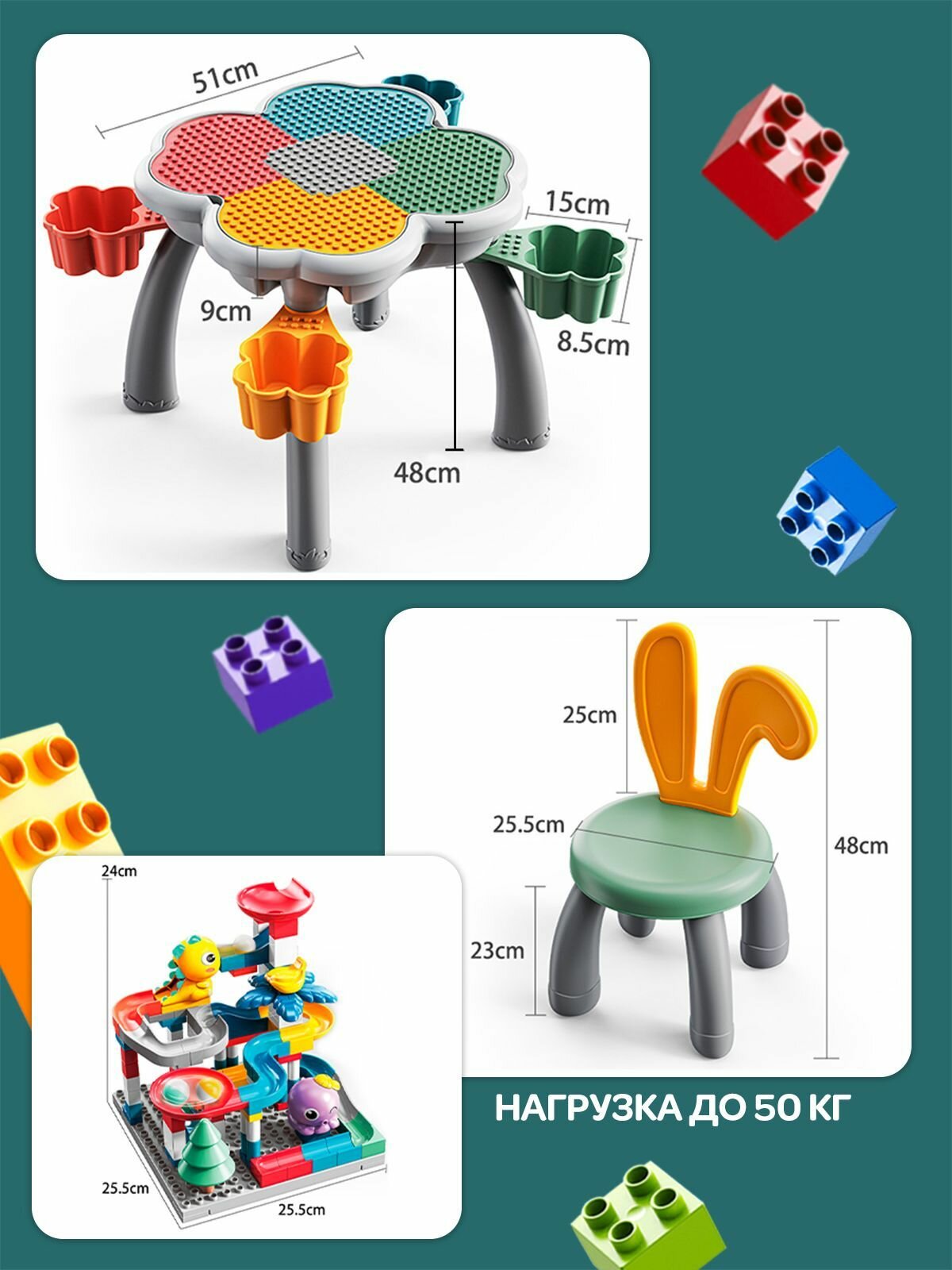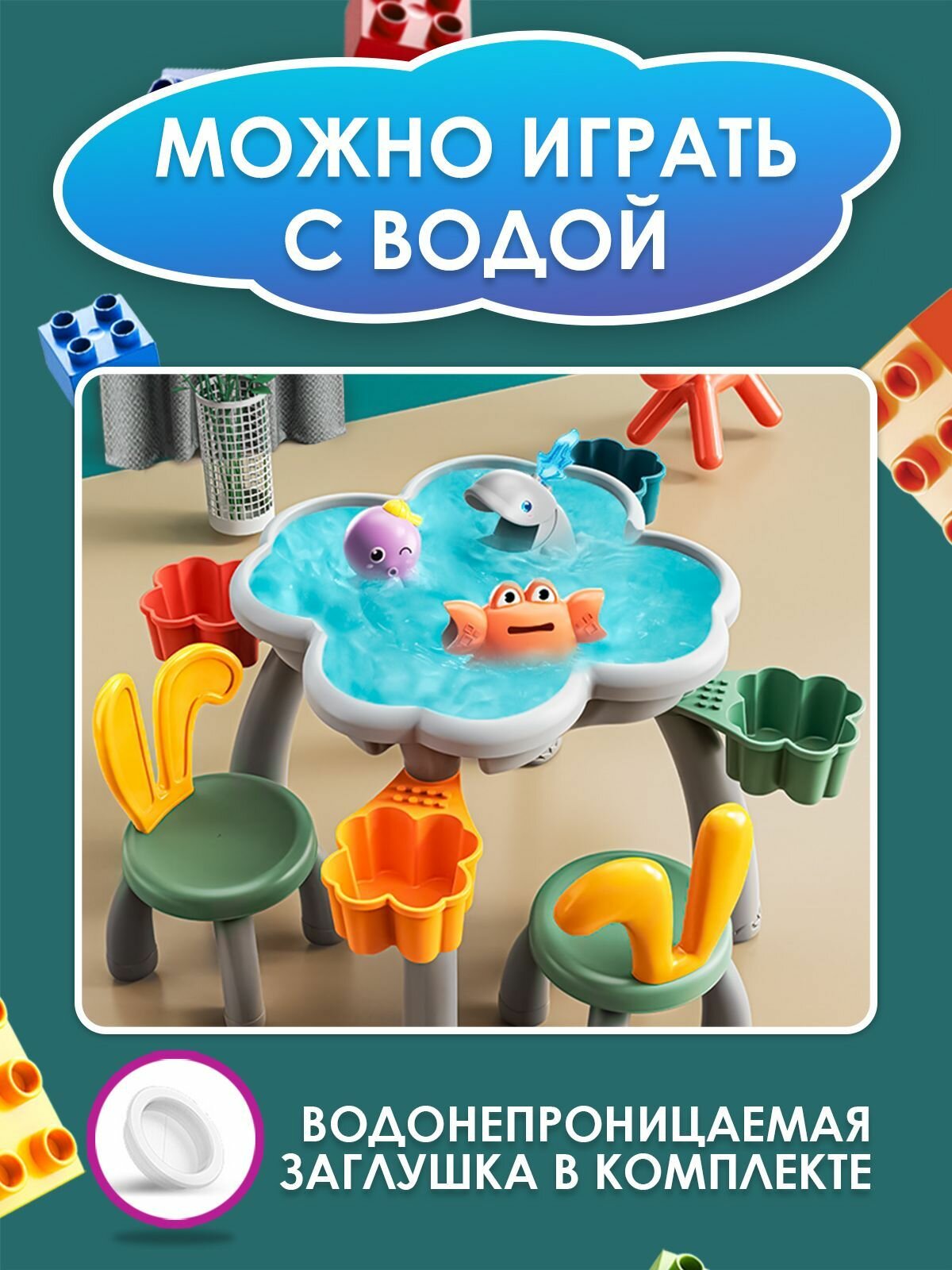 Столик детский со стульчиком и конструктором WiMi, стол для игр с водой и песком, для творчества интересное: