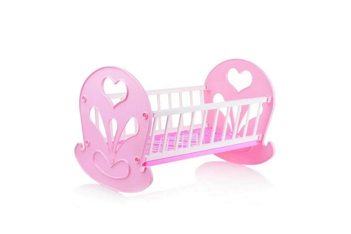 Купить Кровать-качалка Огонек с-250 для кукол, пластик, резные спинки, розовый/белый