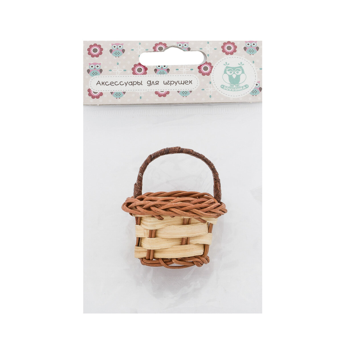 Корзинка плетеная миниатюрная для куклы Айрис, 26212, 4*3 см (бело-коричневый) интересное: