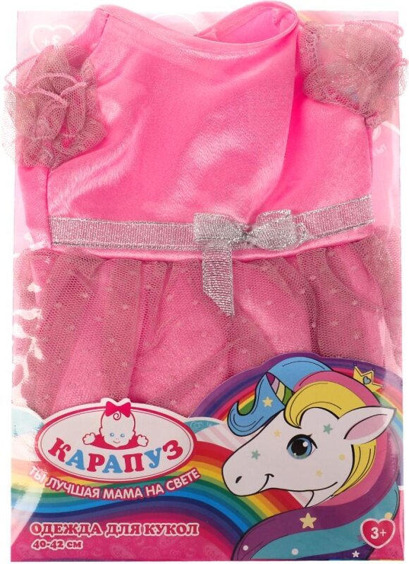 Платье Карапуз OTF-2205D-RU, для кукол, двухцветное, атлас, фатин, с бантом интересное: