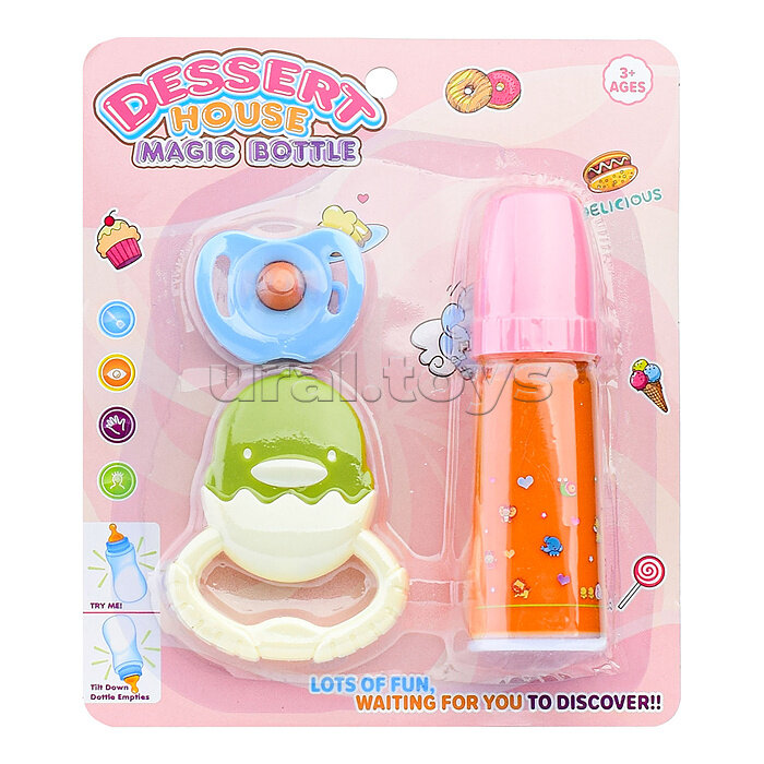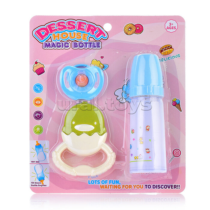 Купить Аксессуары для куклы (бутылочка с крышкой, пустышка, прорезыватель) на листе