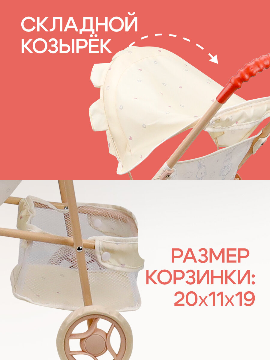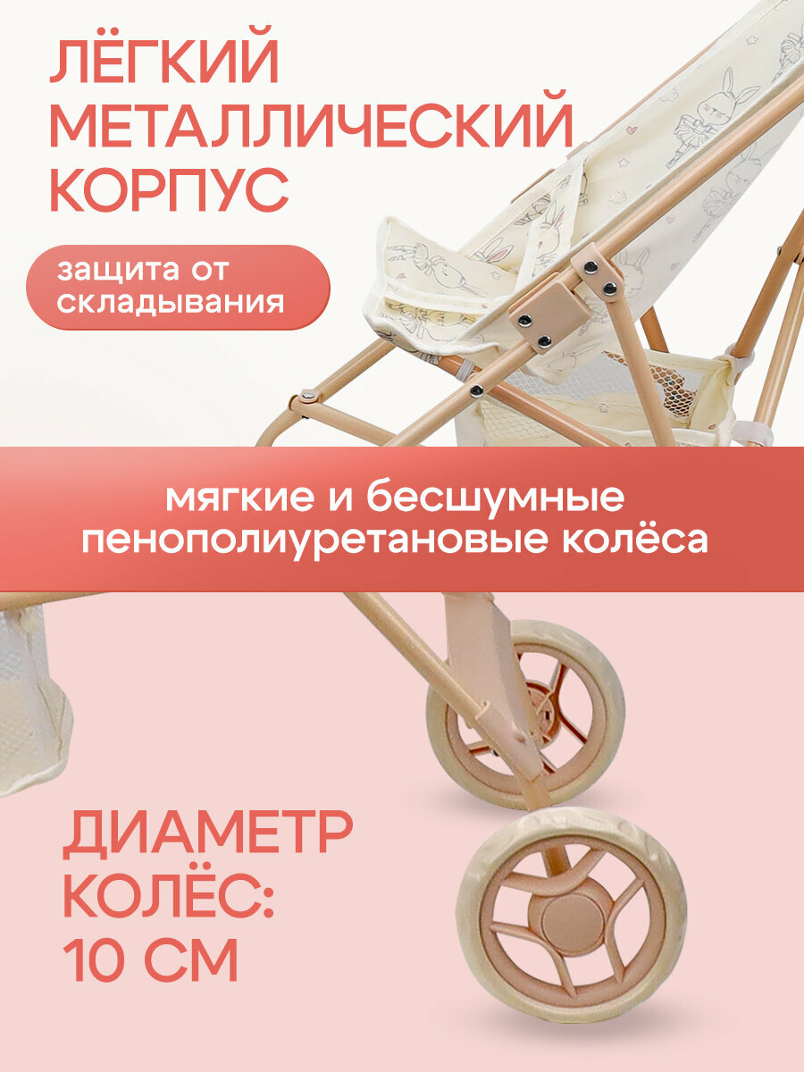 Прогулочная коляска-трость серия "Заюшка" для кукол до 40 см, складная, 55х52х26 см, подарок для девочек