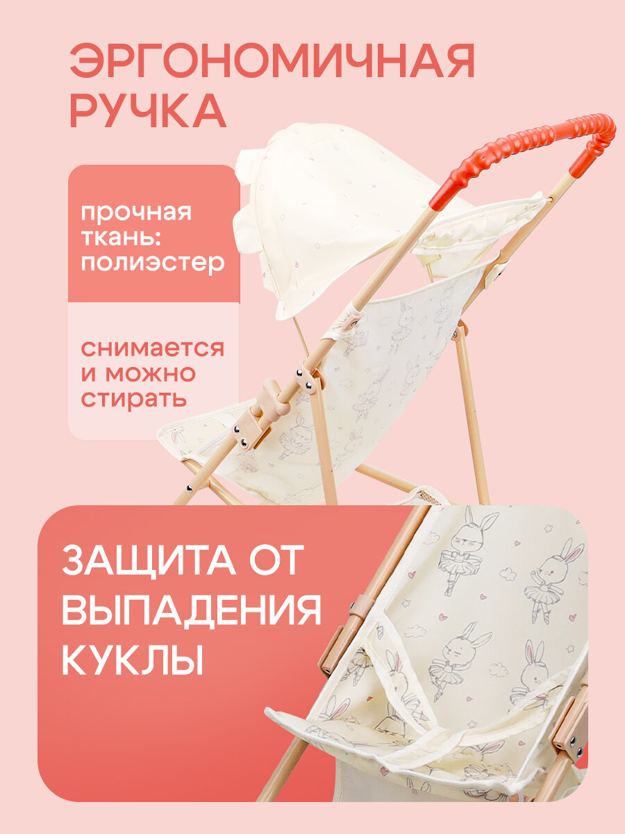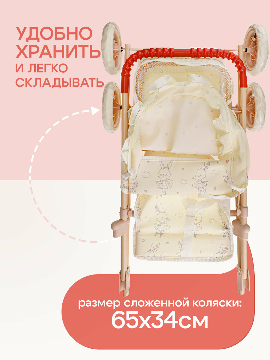 Коляска игрушечная серия "Заюшка" для кукол до 45 см, складная, 65х59х34 см, подарок для девочек интересное: