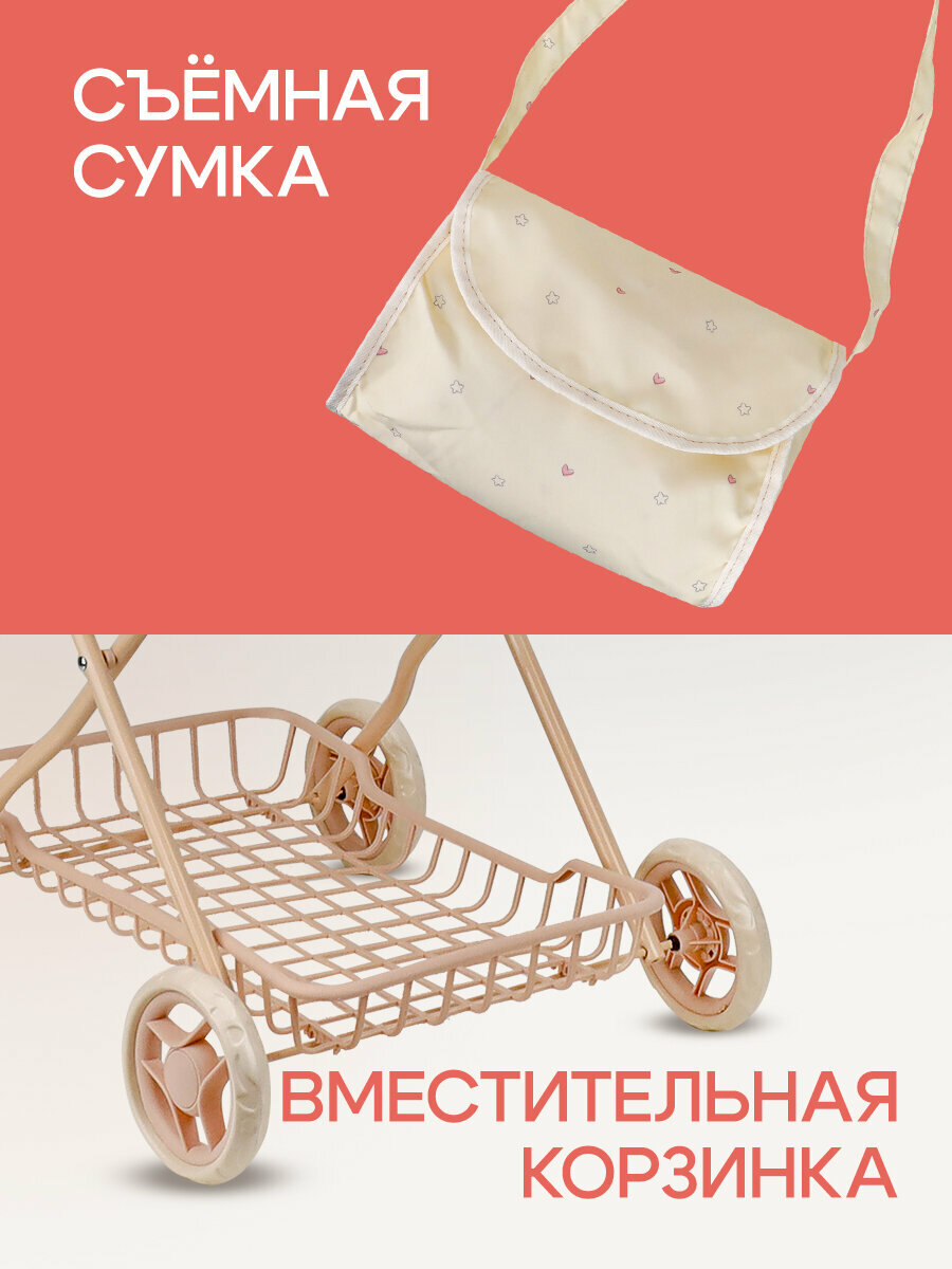 Купить Коляска-люлька серия "Заюшка" игрушечная для кукол до 45 см, складная, корзина и сумка в комплекте, 71х63х35 см