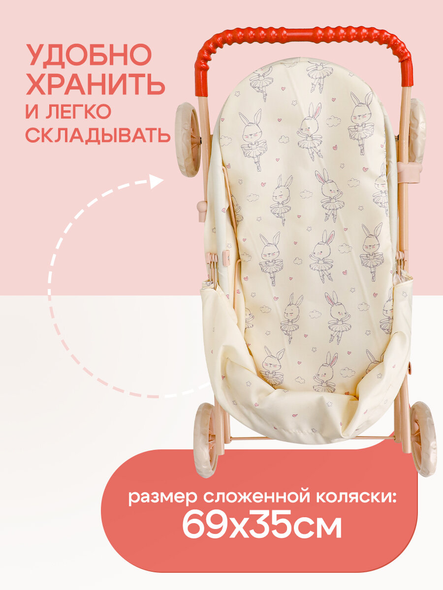 Коляска игрушечная серия "Заюшка" для кукол до 45 см, складная, 65х59х34 см, подарок для девочек