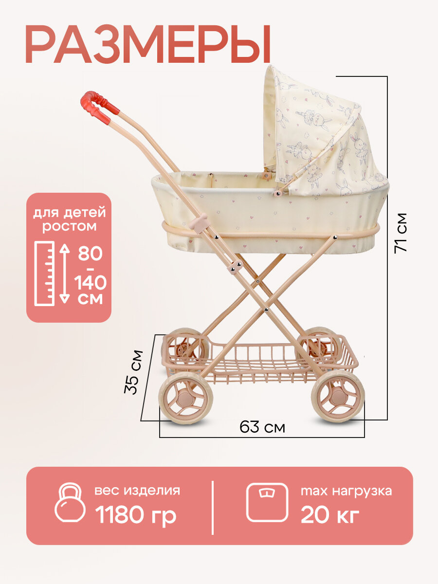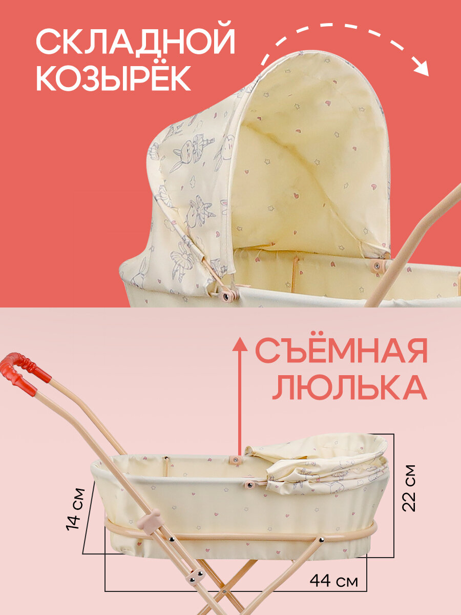 Коляска игрушечная серия "Заюшка" для кукол до 45 см, складная, съемная люлька, 73х64х36 см, подарок для девочек