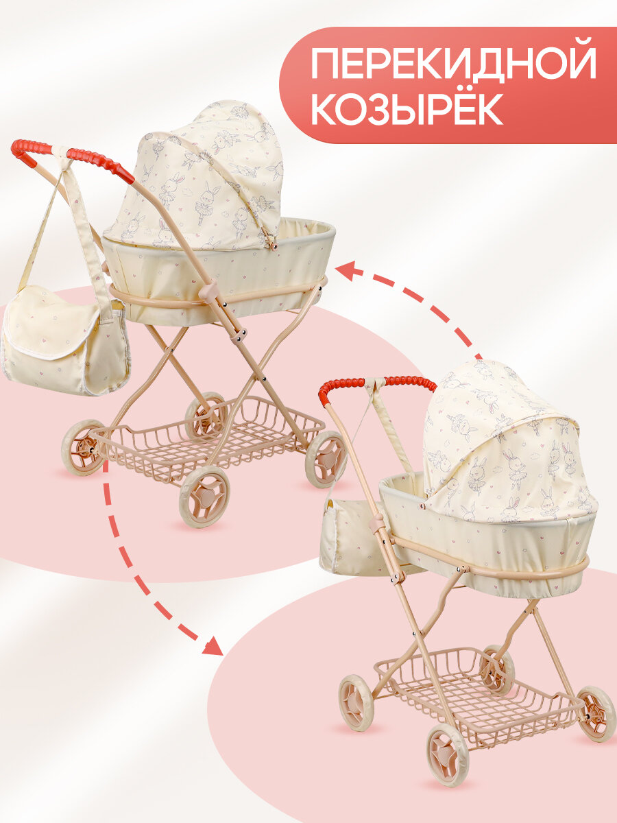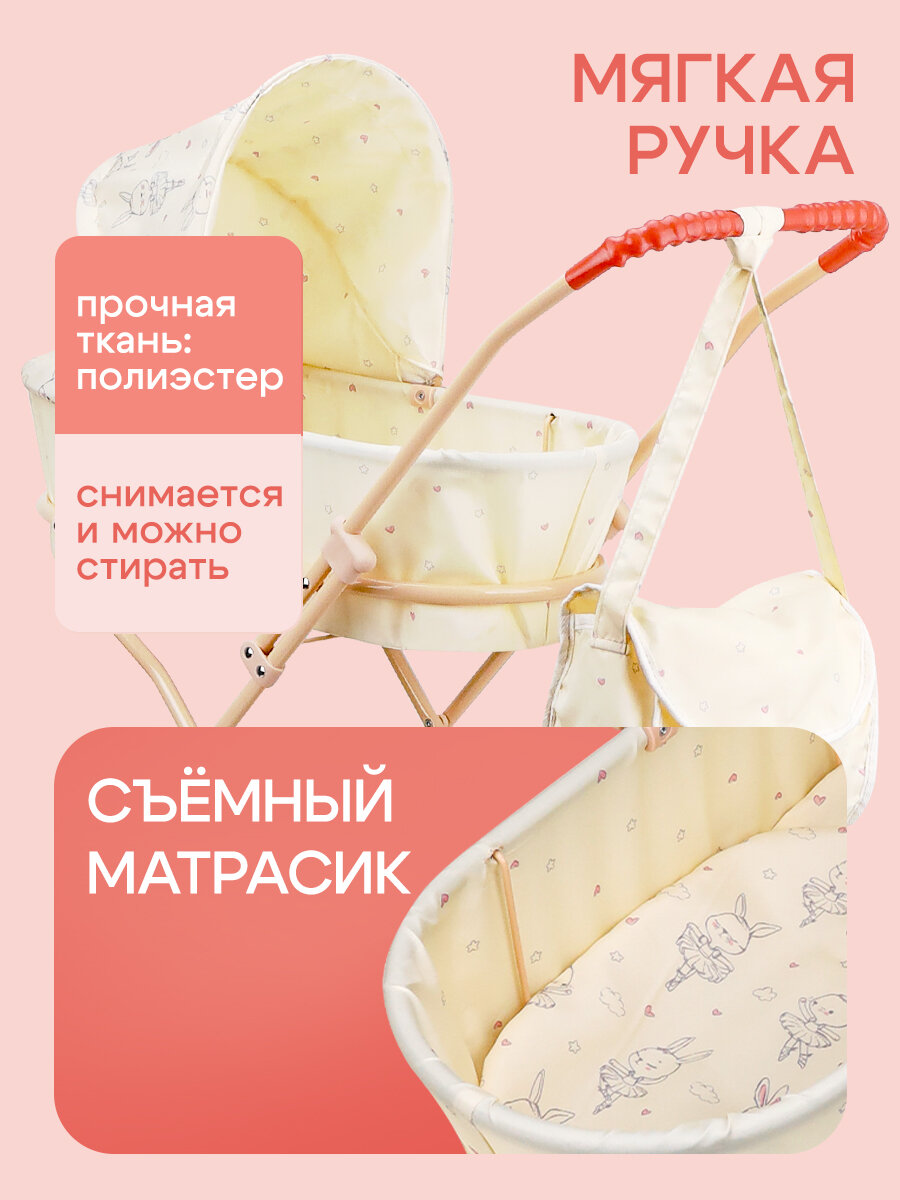 Коляска-люлька серия "Заюшка" игрушечная для кукол до 45 см, складная, корзина и сумка в комплекте, 71х63х35 см интересное: