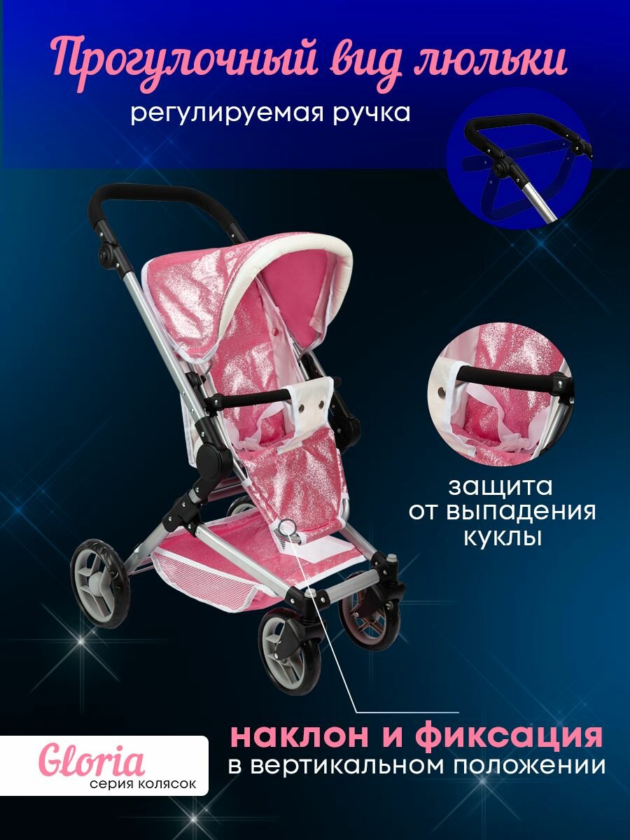 Коляска-трансформер серия "Gloria" 3в1 для кукол до 50 см, с люлькой в комплекте, 60х44х82 см. Подарок для девочке от 3+ интересное: