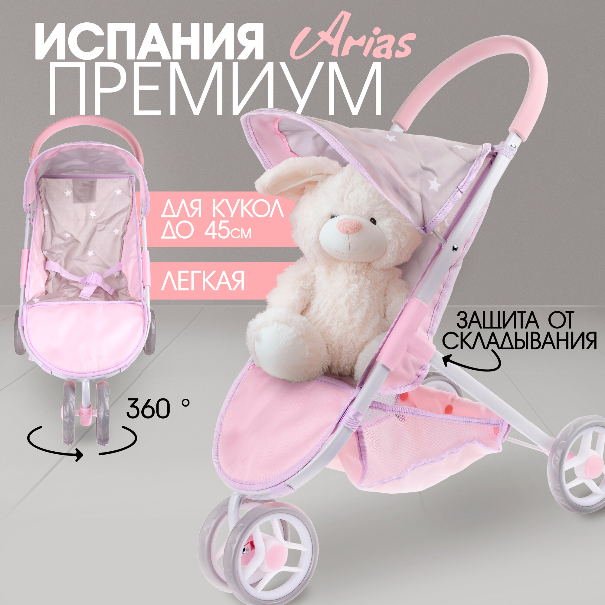 Коляска для кукол детская Arias прогулочная, складная, сидячая, для reborn интересное:
