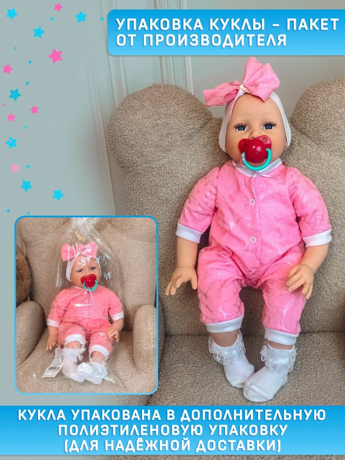 Купить Мягкая говорящая кукла реборн девочка 50 см с пустышкой Производство Беларусь