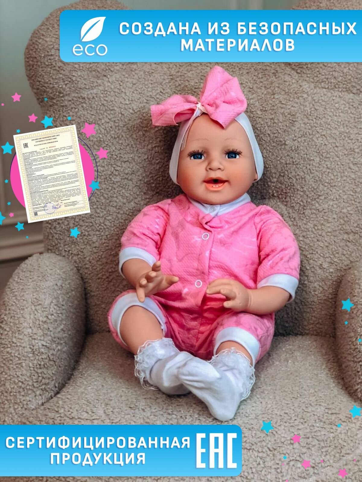 СохранитьМягкая говорящая кукла реборн девочка 50 см с пустышкой Производство Беларусь интересное: