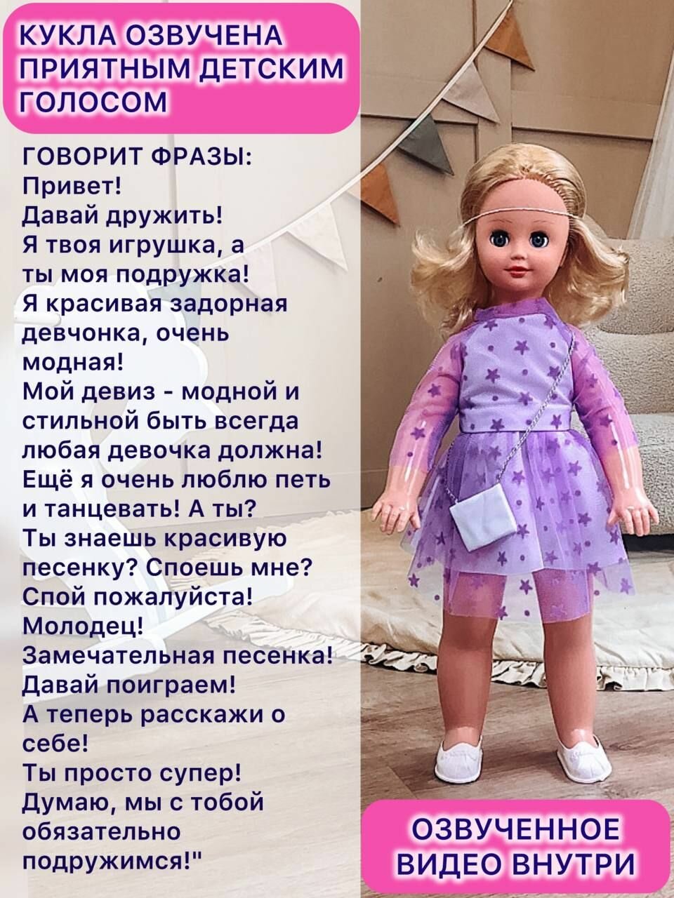 Большая интерактивная говорящая кукла для девочки 60 см / Производство Беларусь
