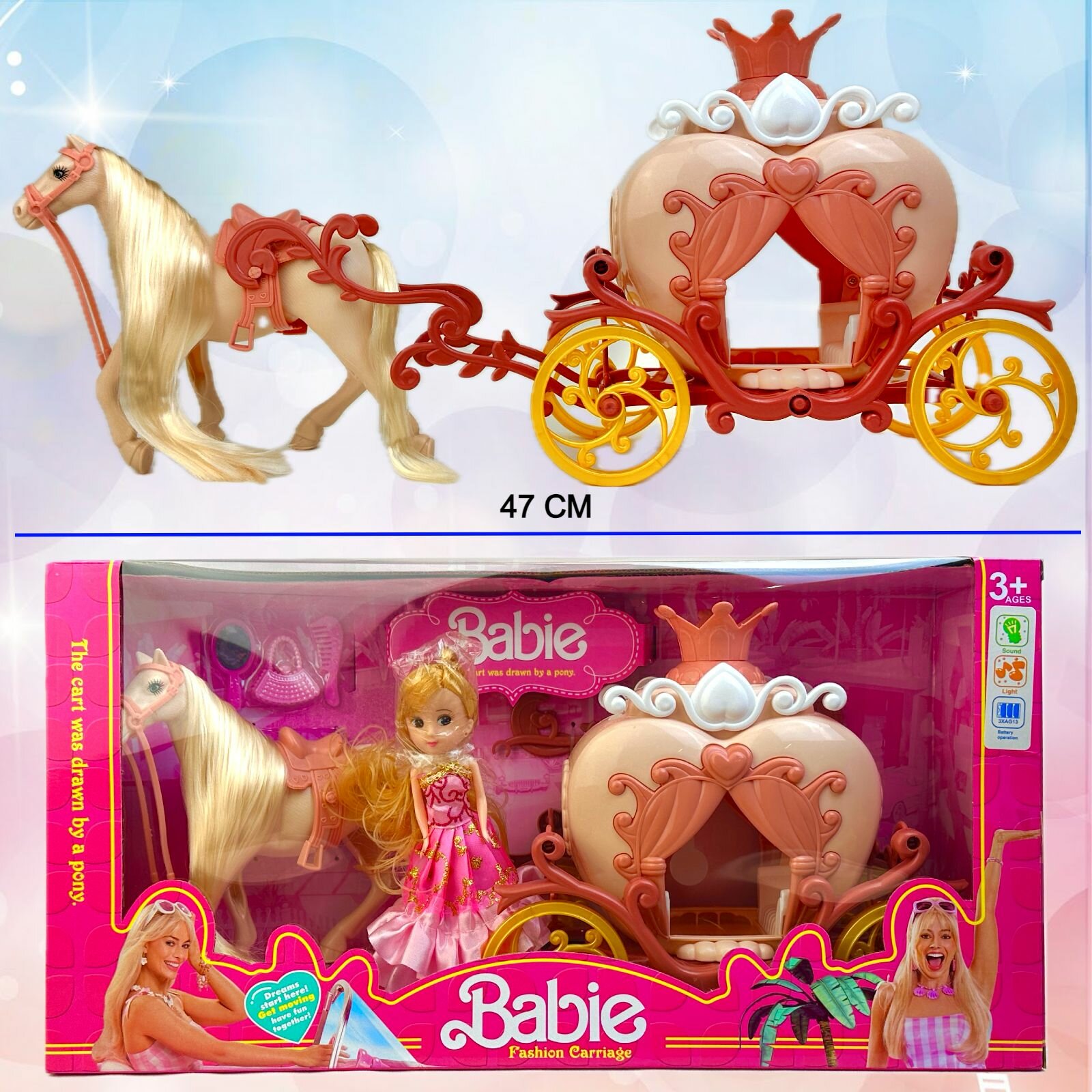 Купить Игровой набор Карета с куклой и лошадью, фигурка лошадки, кукла, карета с подсветкой, звук, набор для девочек, 47х21х11 см
