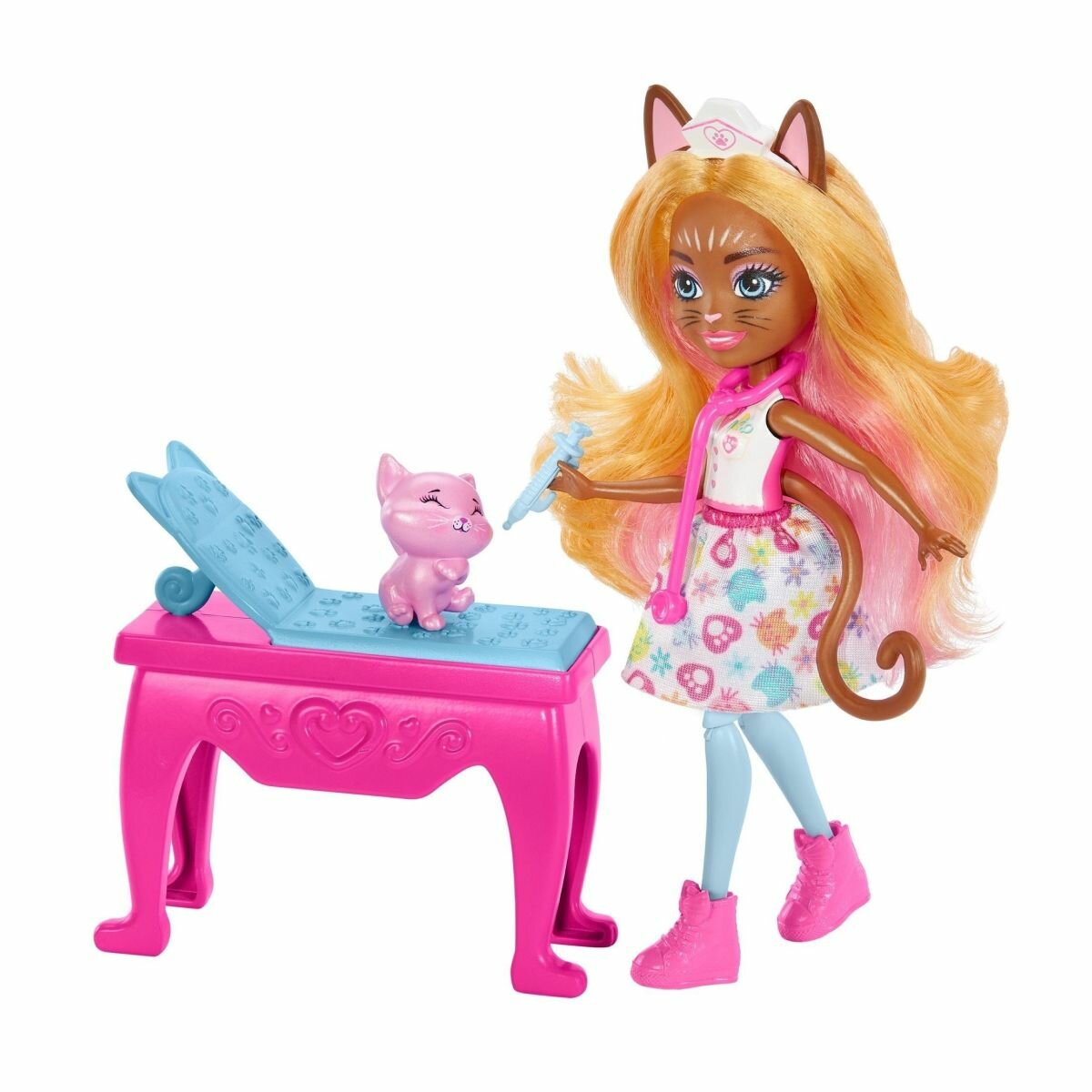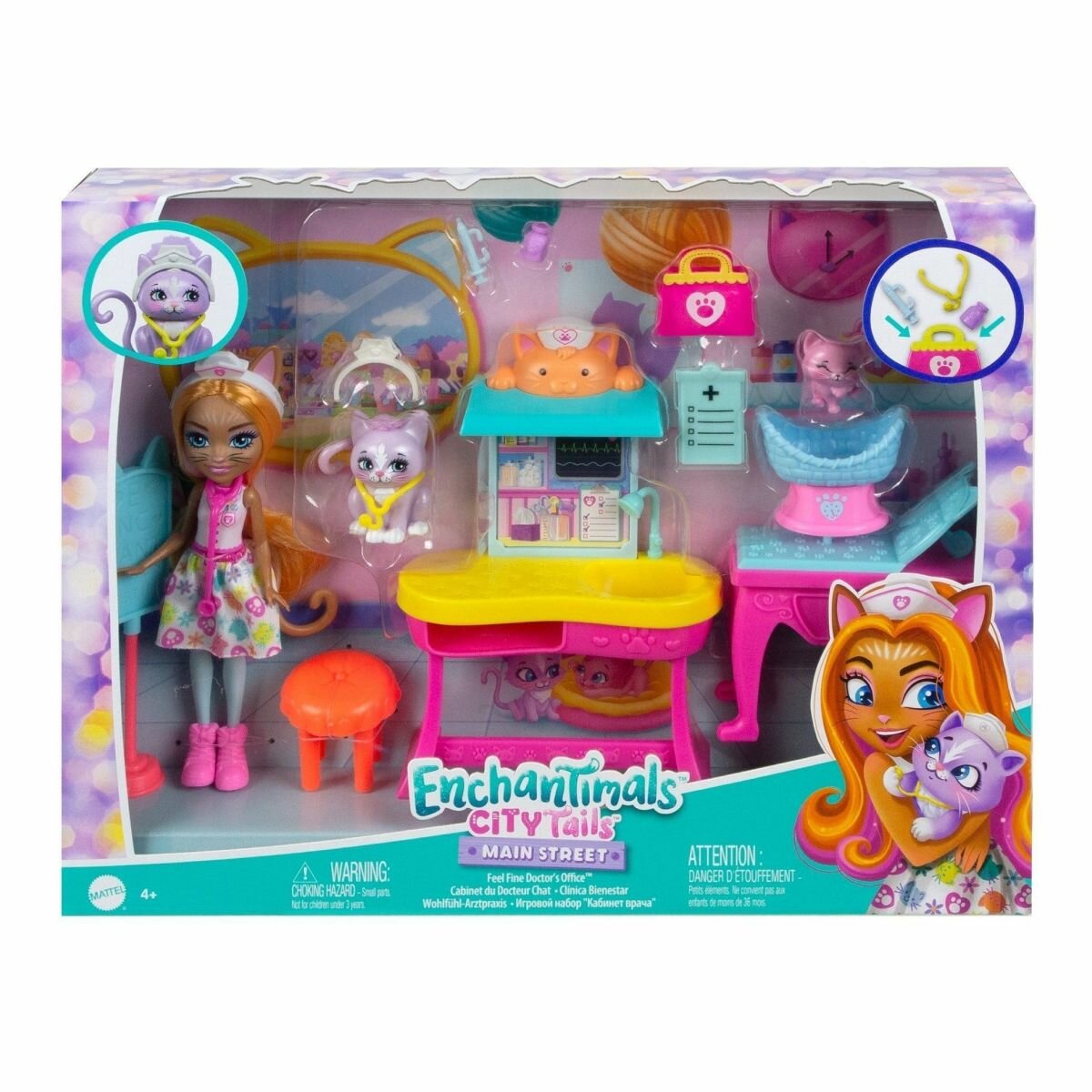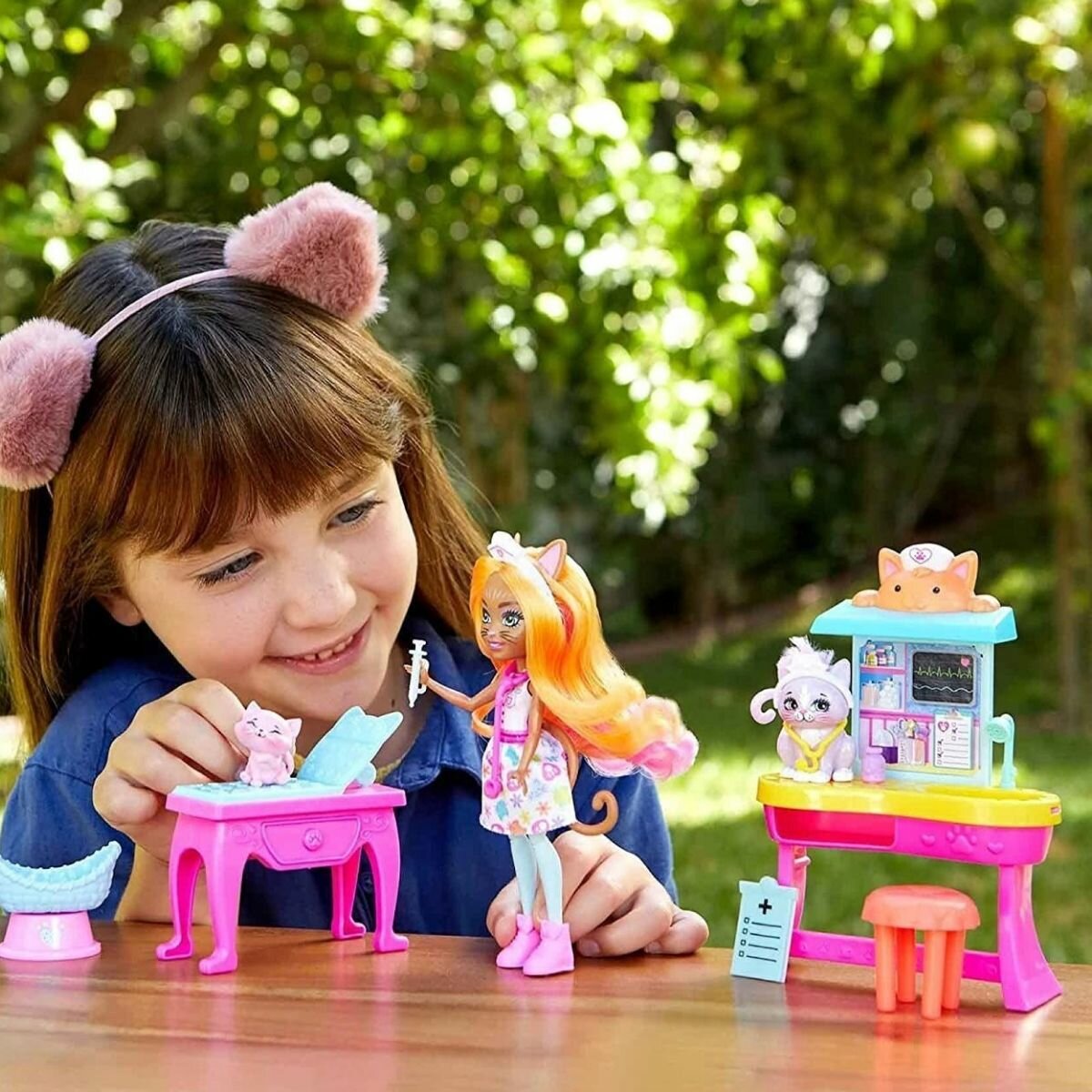 Купить Кукла Enchantimals City Tails HLH22 медицинский кабинет кошечки Карлин с аксессуарами Энчантималс Mattel