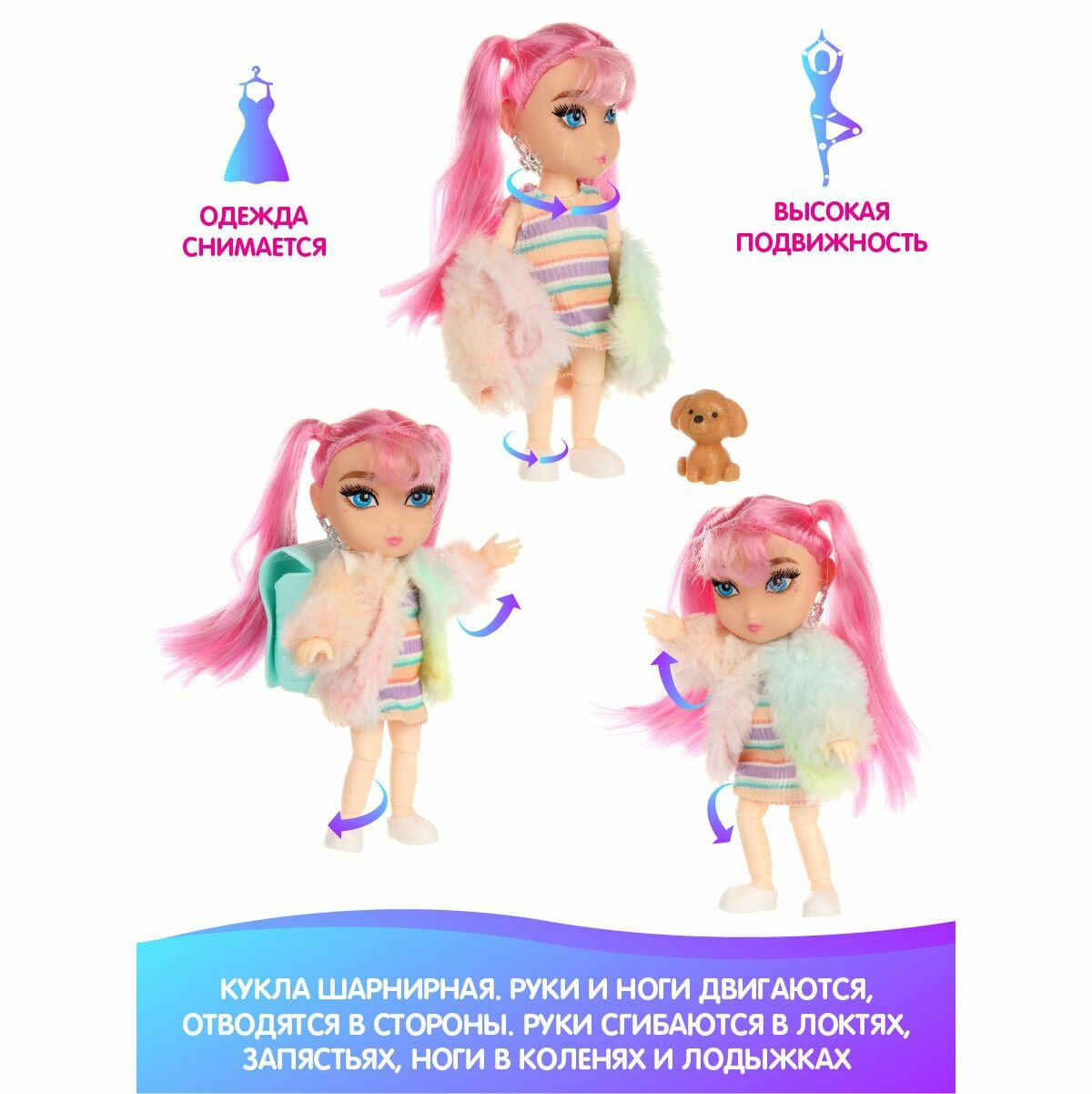 Шарнирная кукла с аксессуарами и питомцем, Veld Co / Куколка с длинными волосами для девочек, 133801 интересное: