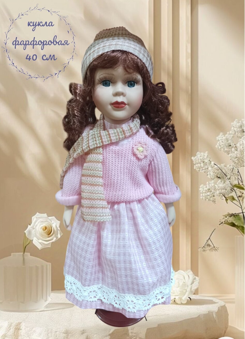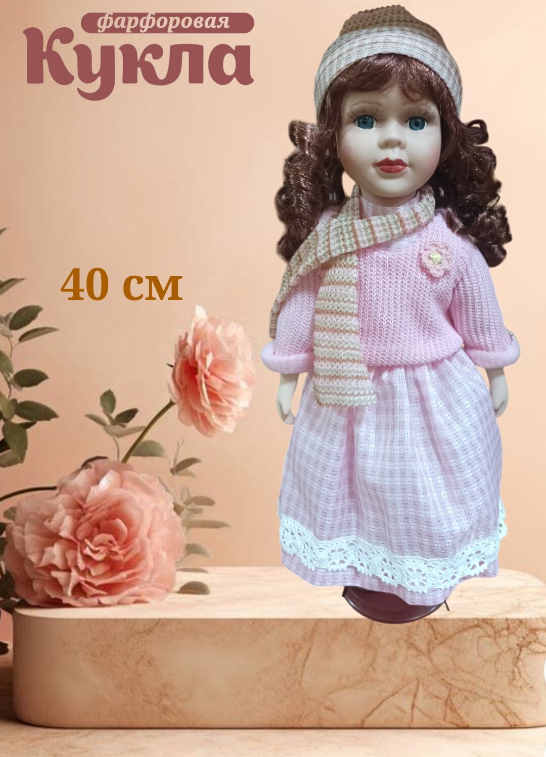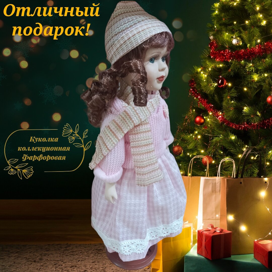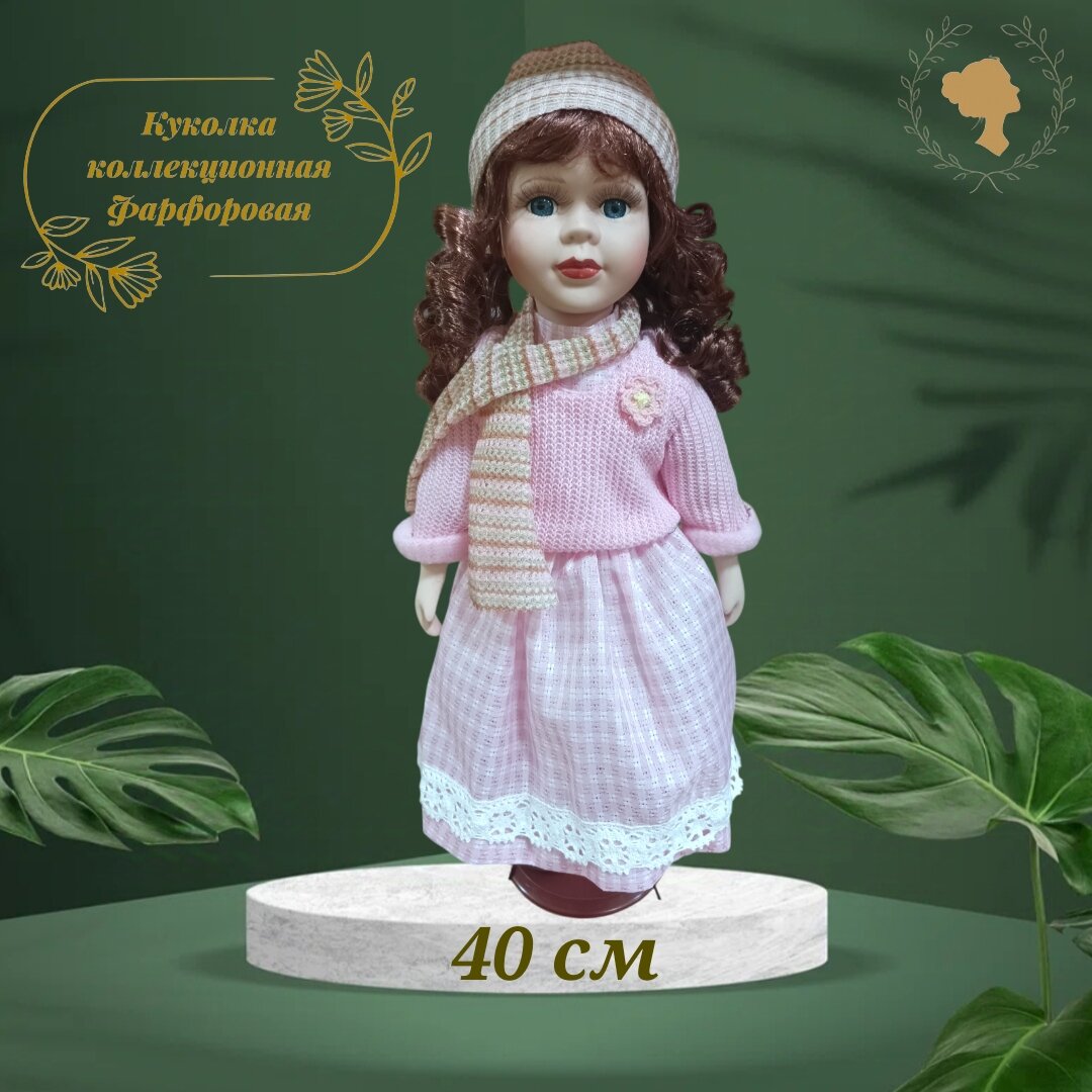 Кукла фарфоровая коллекционная VITtovar, керамика, текстиль, с мягконабивным телом, на подставке розовое платье 40 см 29219 интересное: