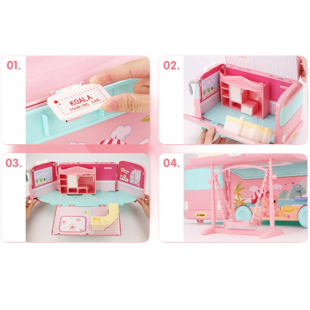 Купить Кукольный домик Автобус с мебелью, 72 элемента, размер собранного домика 54 х 40 х 17 см, питомцы в комплект не входят