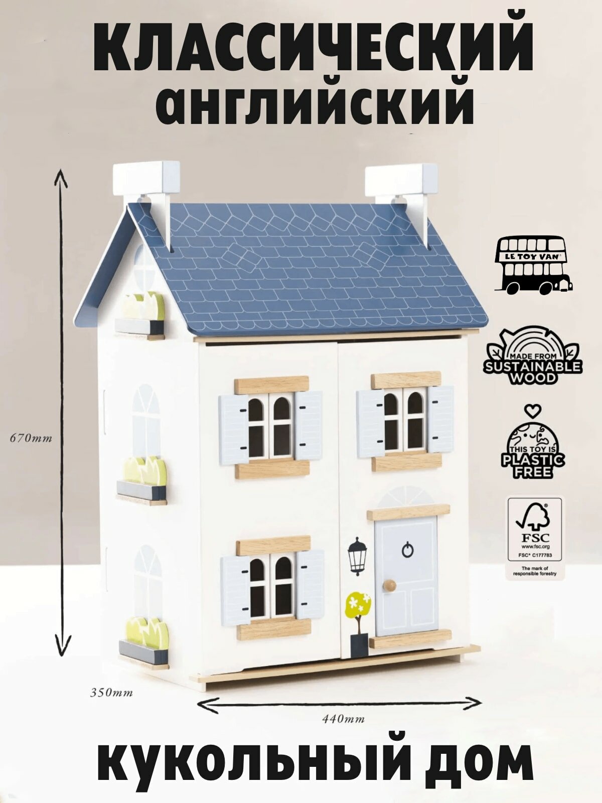 Кукольный домик Небесная лазурь, бежевый, пастельный тона, Le Toy Van интересное: