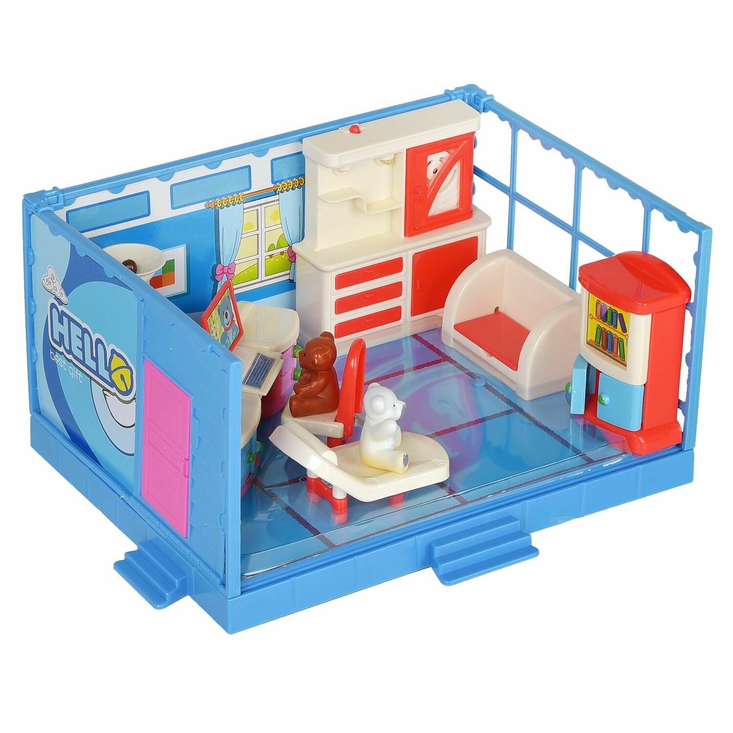 Купить Комната модульная в наборе с мебелью и фигурками животных, 12 предметов, в коробке (гостинная)