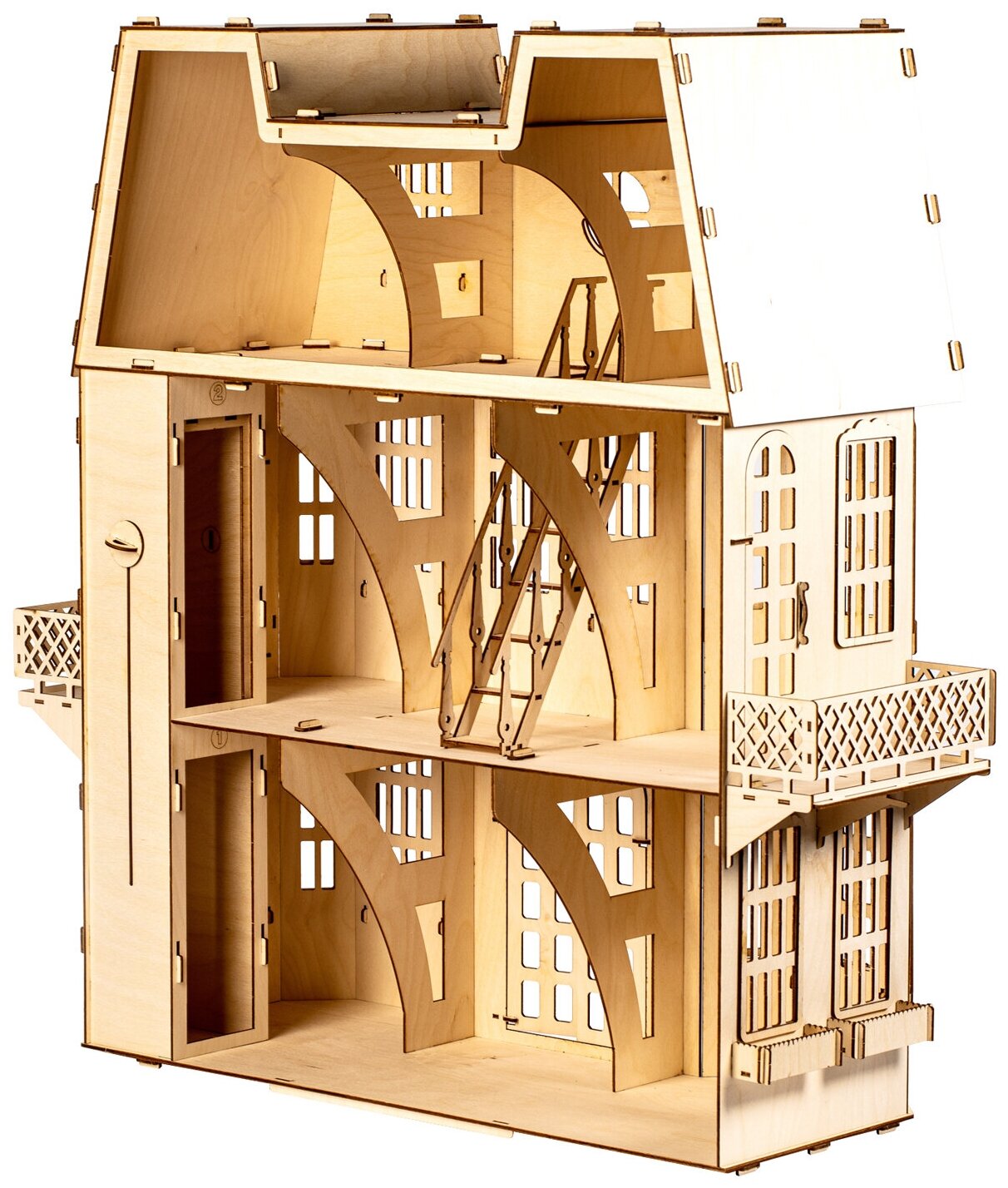 Купить Деревянный Кукольный домик "Чудо-Дом Большой" №15-2 (2 этажа, мансарда, лифт) для кукол 15-23 см