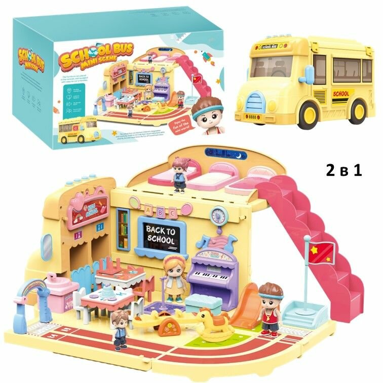 Купить G0020 Игровой набор интерактивный школьный автобус с мебелью ; игрушка кукольный домик