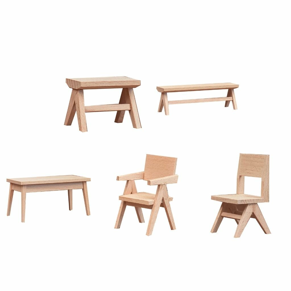 Купить Миниатюрная деревянная мебель для кукол: стул/стол 1:12