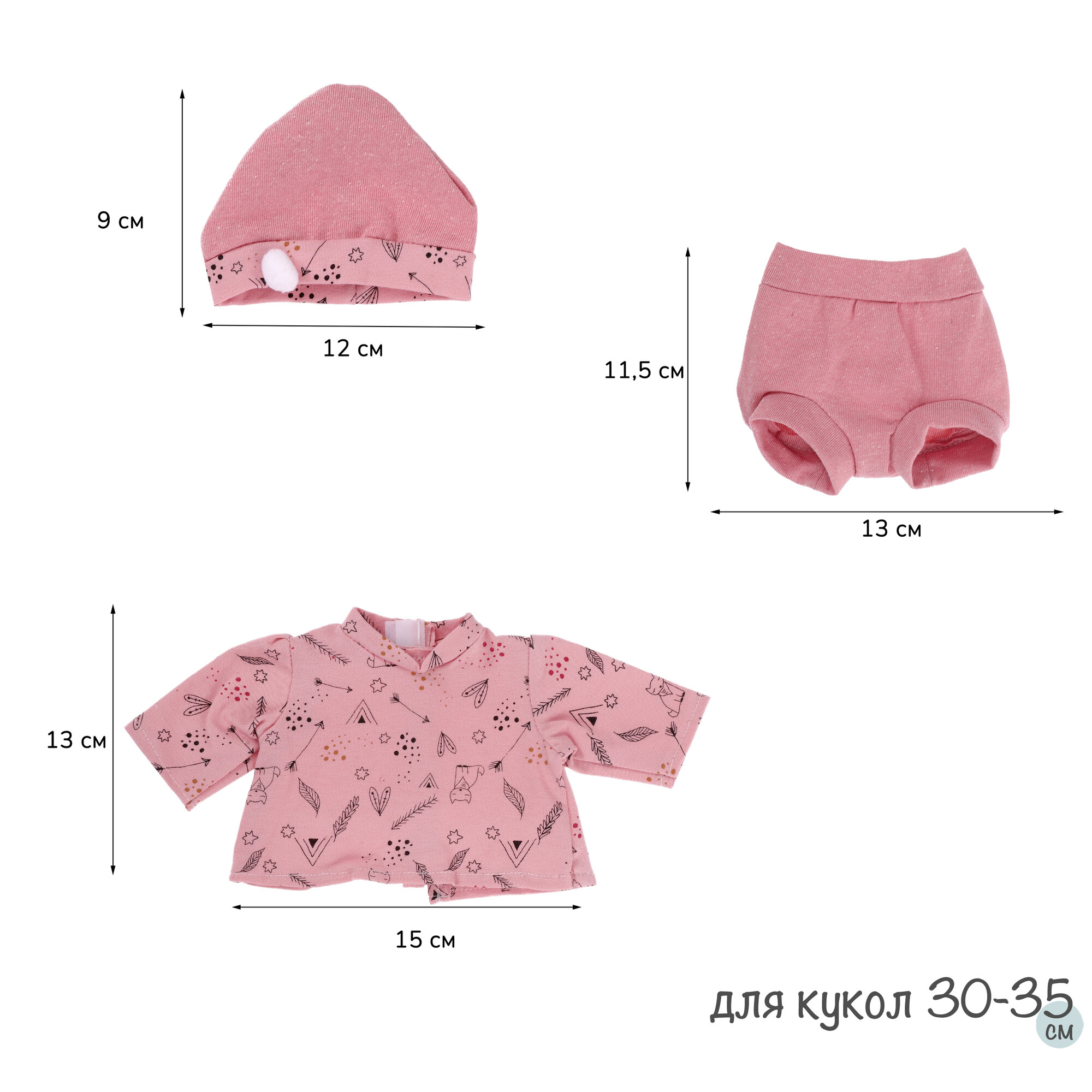 Сохранить91033-23 Одежда для кукол и пупсов 30 - 35 см, кофта с детским принтом, шорты, шапка интересное: