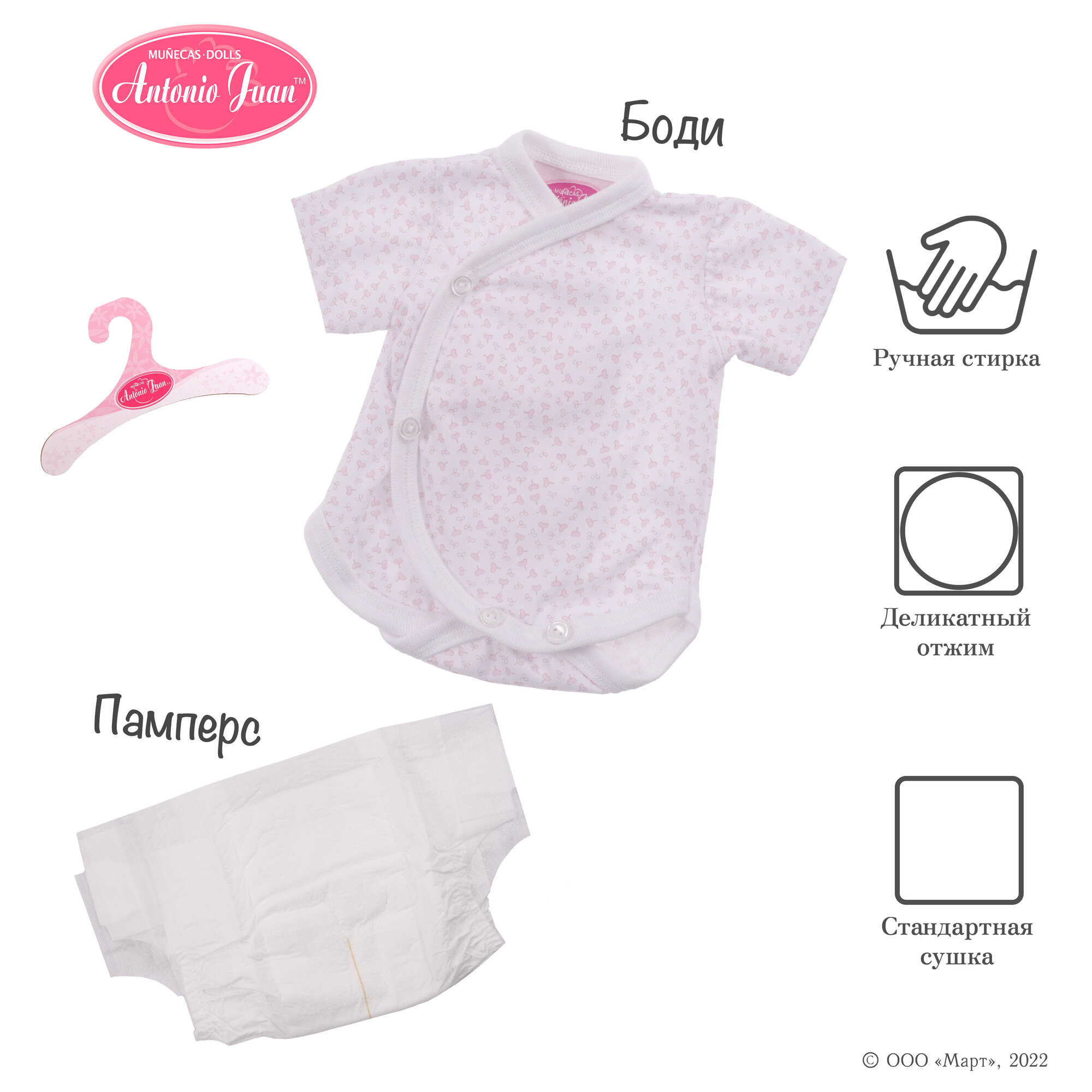 Купить 91046-17 Одежда для кукол и пупсов 40 - 45 см, боди белое с принтом, подгузник / памперс