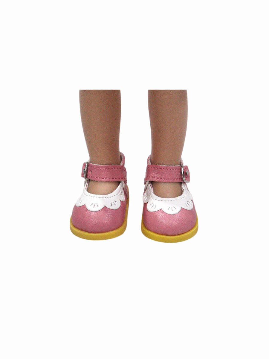 Обувь для кукол, Туфли 5 см с кружевом для кукол Paola Reina 32 см, Berjuan 35 см, Vidal Rojas 35 см и др, фуксия с белым