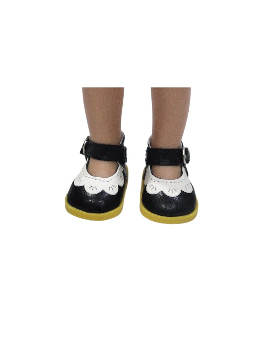 Купить Обувь для кукол, Туфли 5 см с кружевом для кукол Paola Reina 32 см, Berjuan 35 см, Vidal Rojas 35 см и др, черные с белым