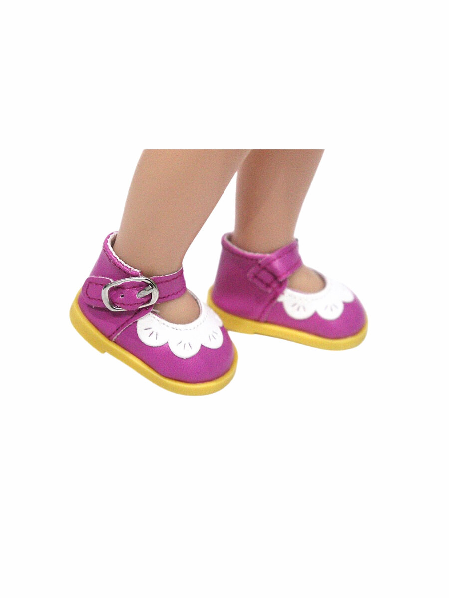 Купить Обувь для кукол, Туфли 5 см с кружевом для кукол Paola Reina 32 см, Berjuan 35 см, Vidal Rojas 35 см и др, фуксия с белым